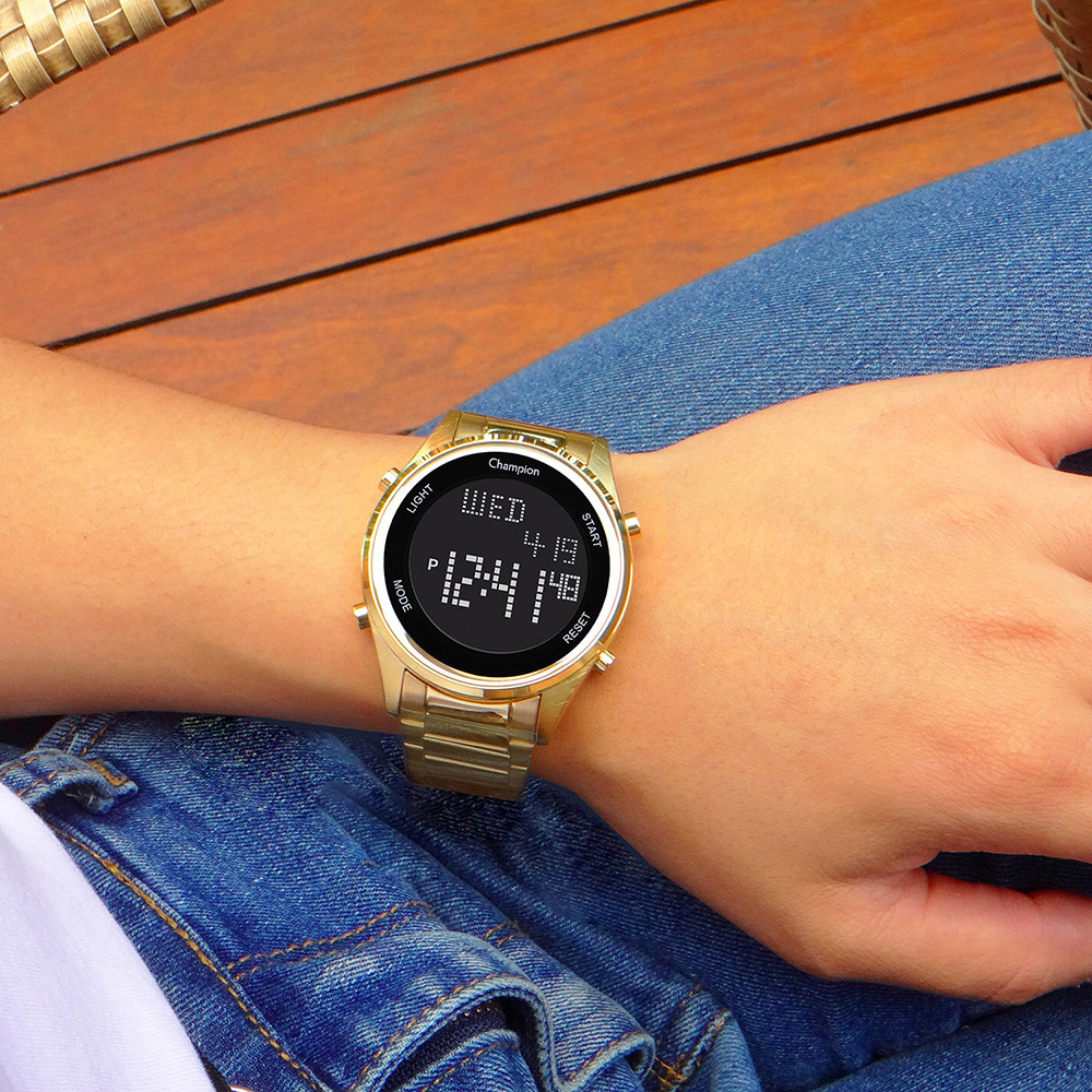 Relógio Digital Feminino Champion Dourado 1 Ano De Garantia