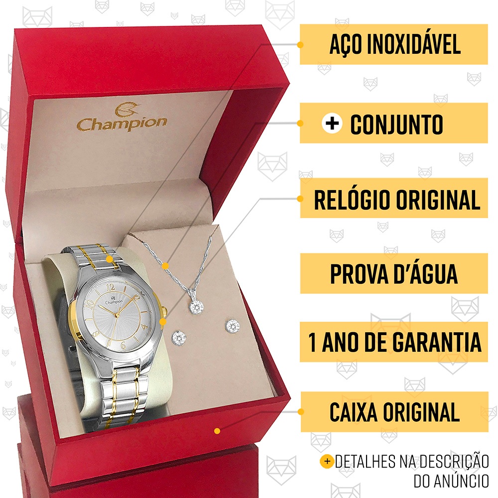 Relógio Champion Feminino Prata Prova d'água com 1 ano de garantia e colar e brincos