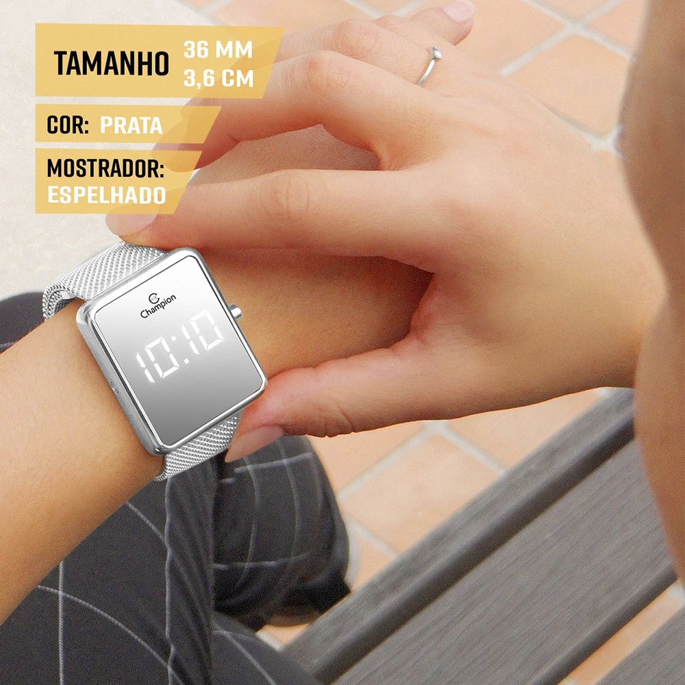 Relógio Feminino Digital Champion Prata Prova Dágua Original