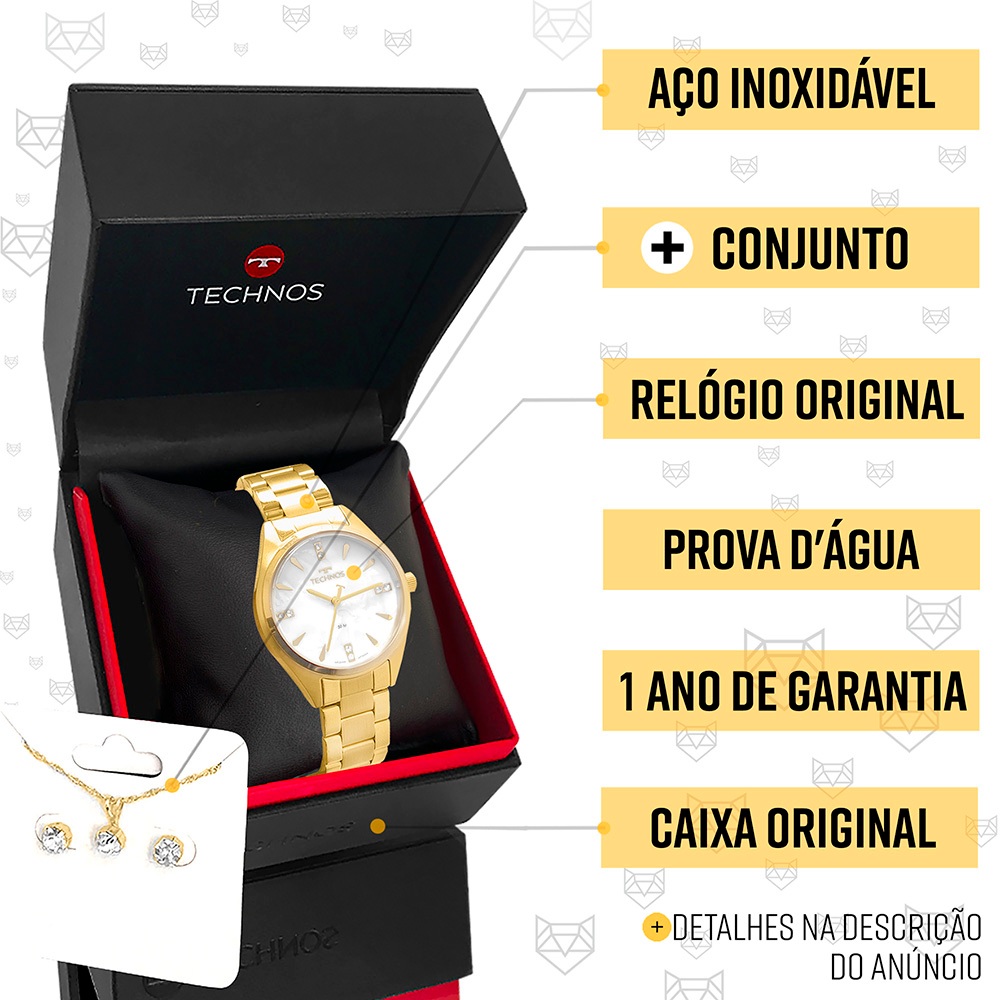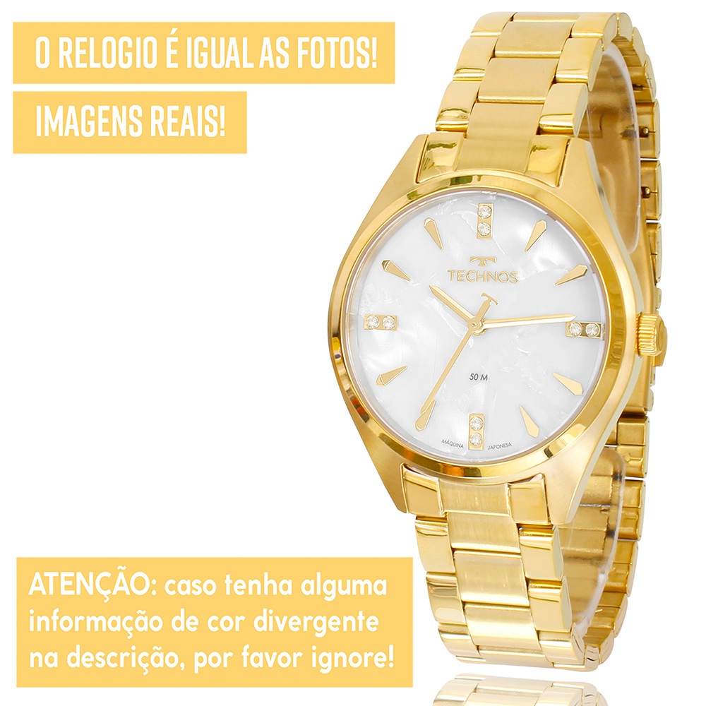 Relógio Feminino Technos Dourado Prova Dágua Top Original