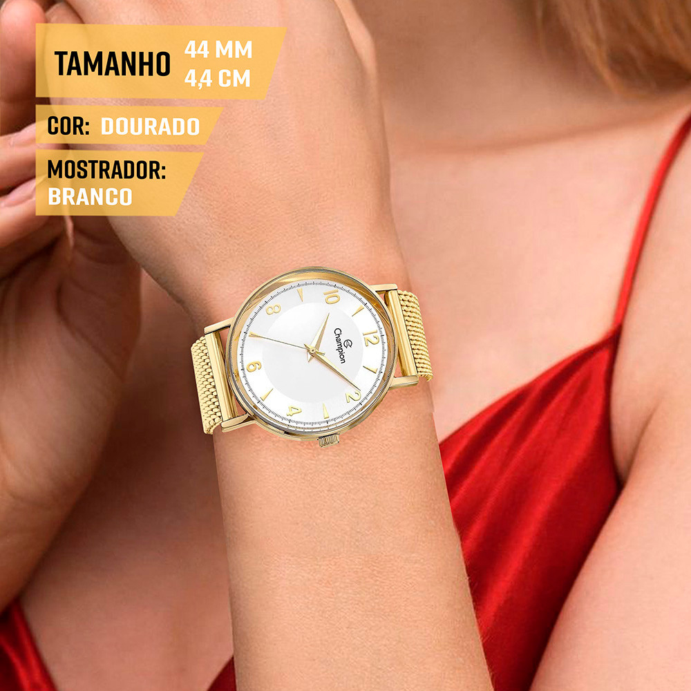 Relógio Champion Dourado Feminino Original Analógico Luxo