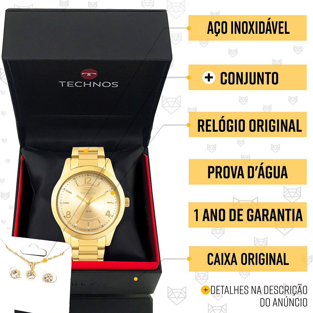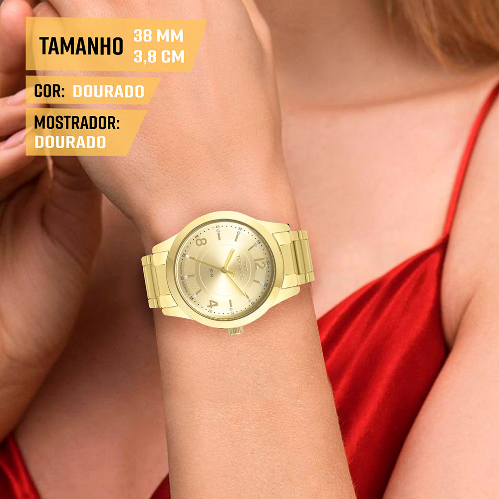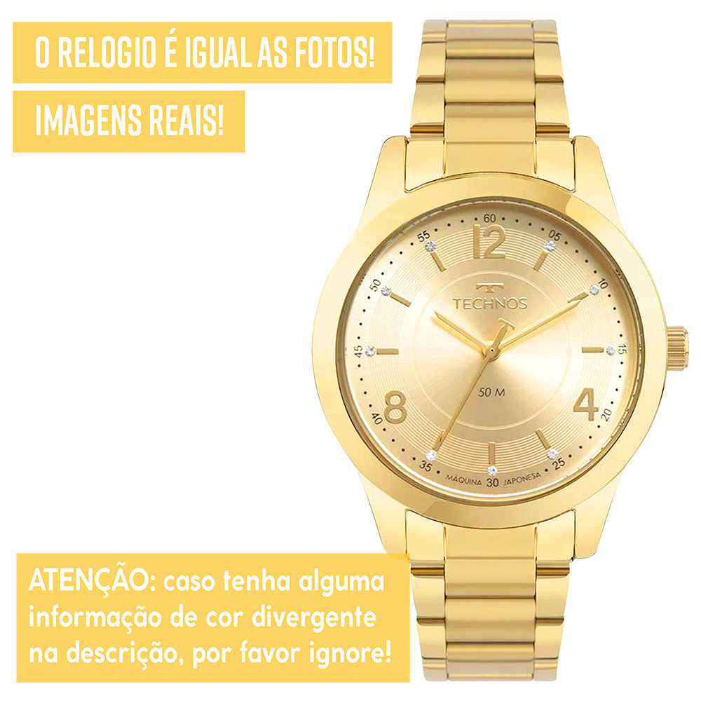 Relógio Technos Feminino Analógico Dourado Original Luxo Top