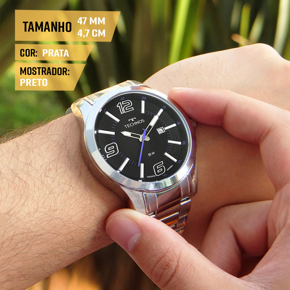 Relógio Masculino Prata Technos Analógico Original Garantia