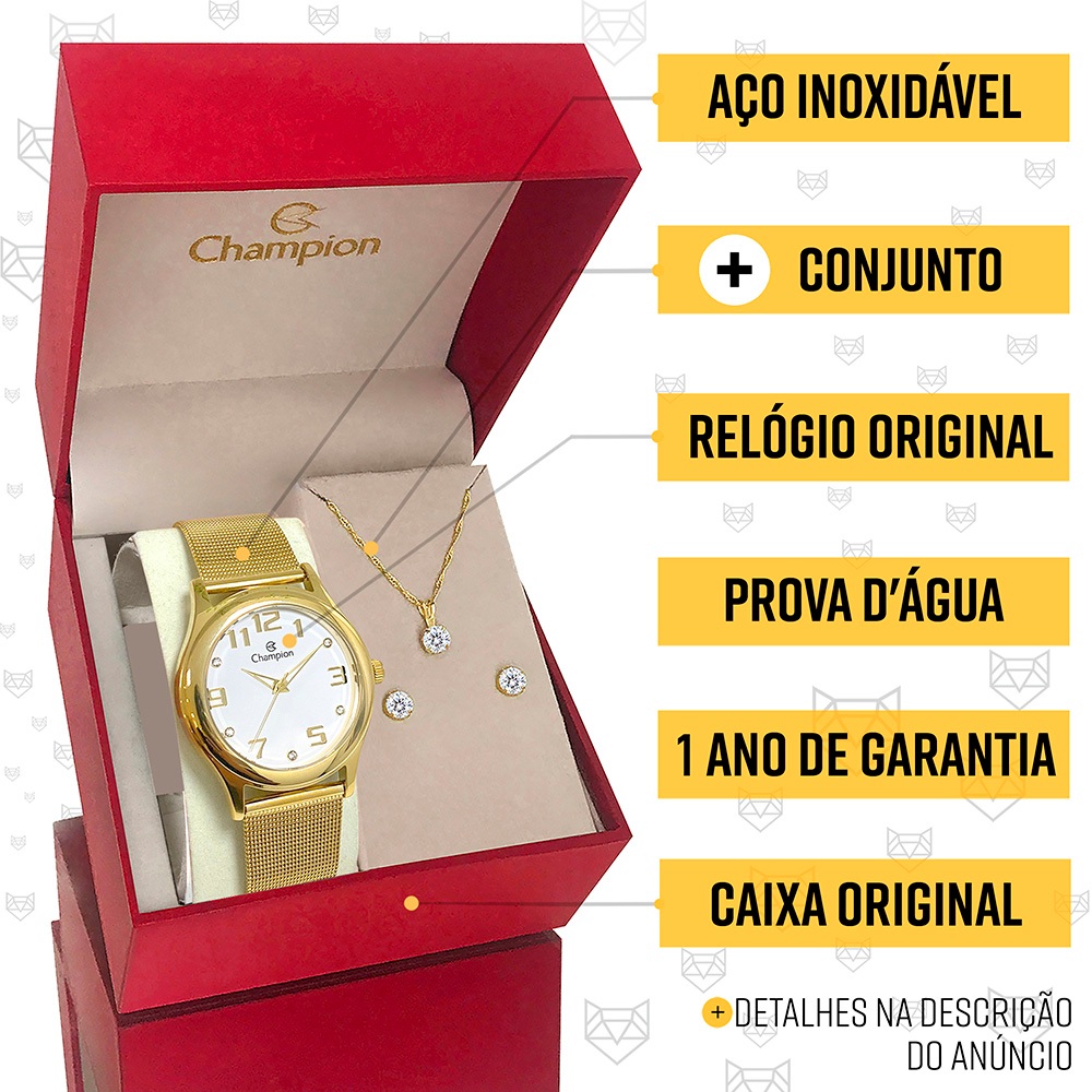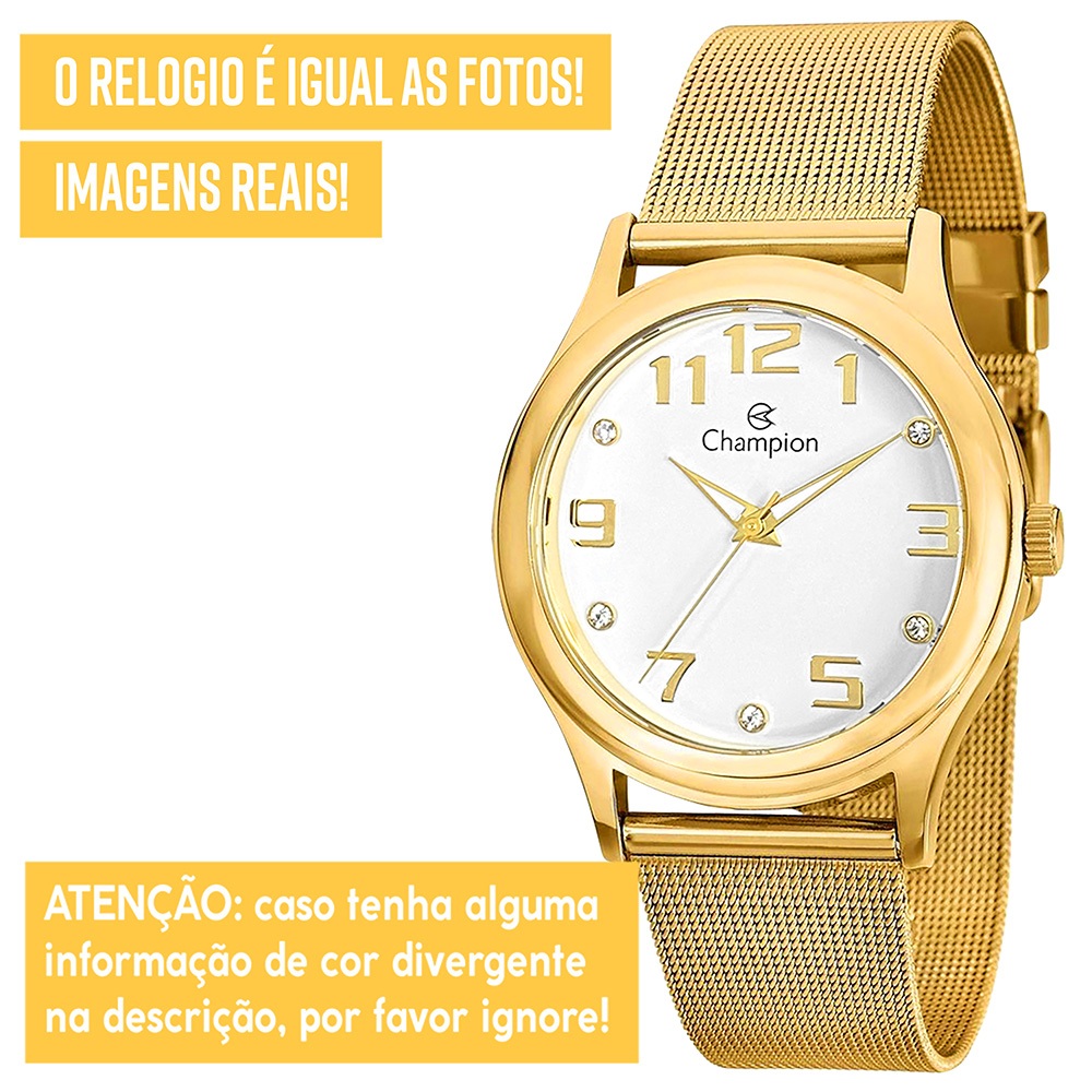 Relógio Champion Feminino Dourado Prova d'água com 1 ano de garantia e colar e brincos