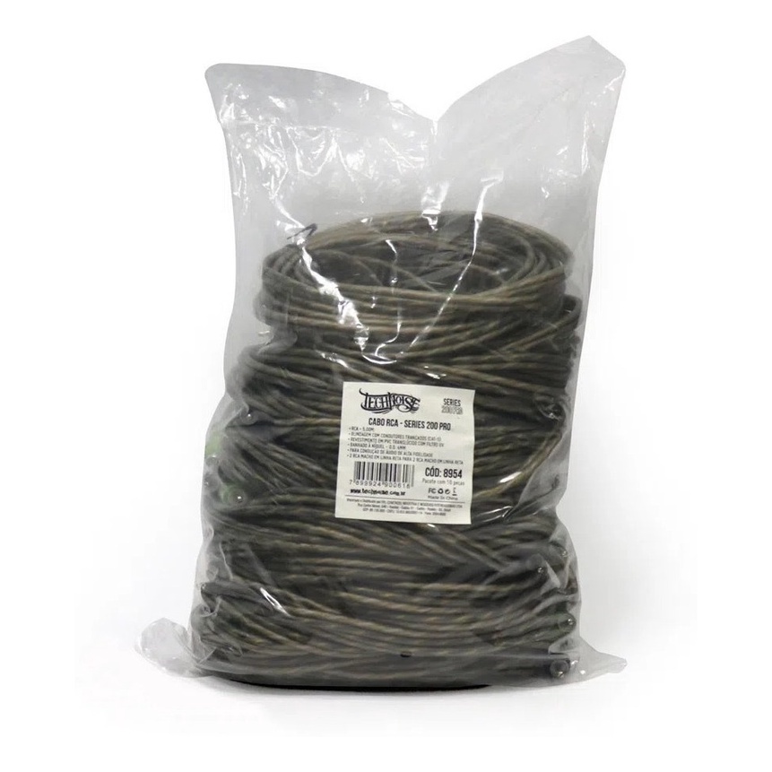 Cabo Rca 5 metros Technoise Série 200 Pro Pacote C/ 10 Peças