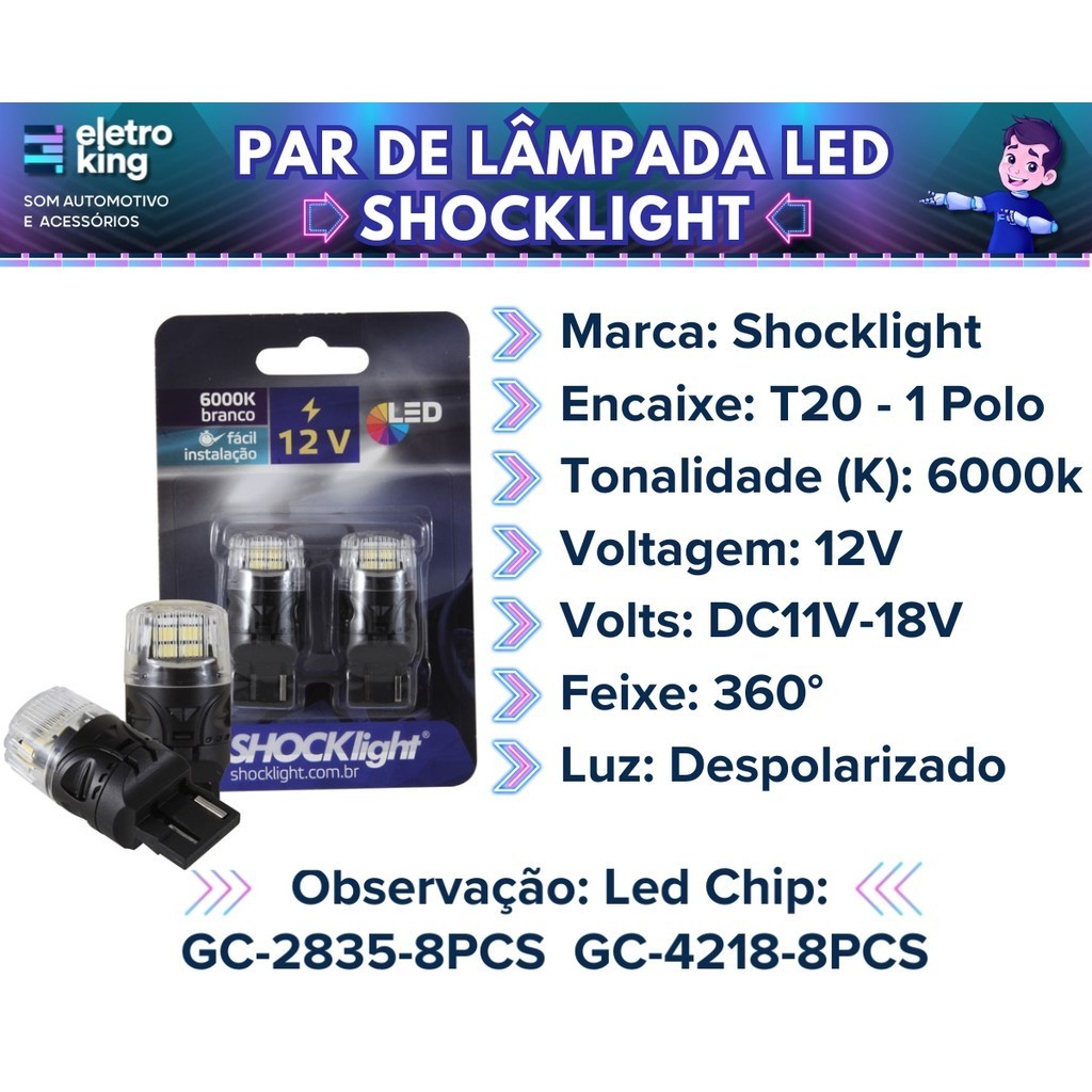 Par Lâmpada Led T20 1 Polo 7440 16 Leds Shocklight - SLL-127440-BC