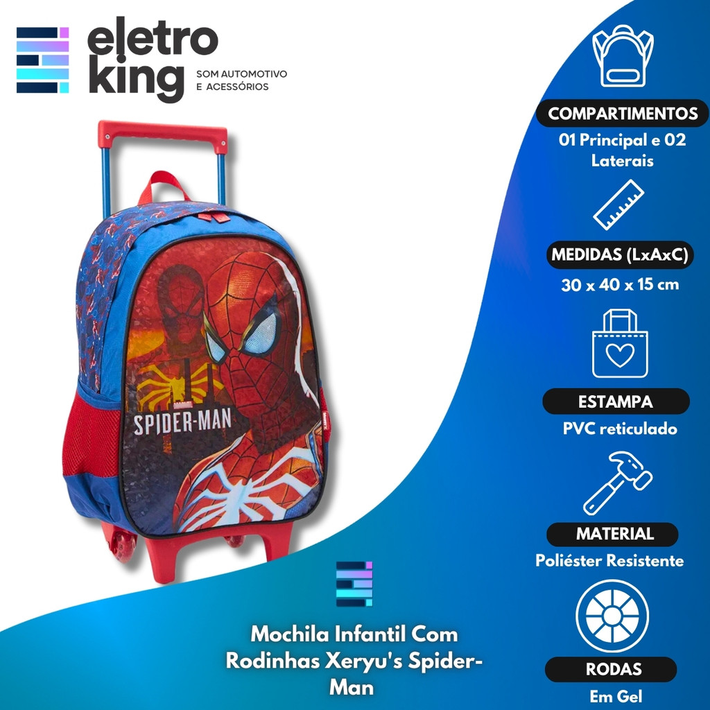 Mochila Infantil Escolar Spiderman C/ Rodas 18l Homem Aranha