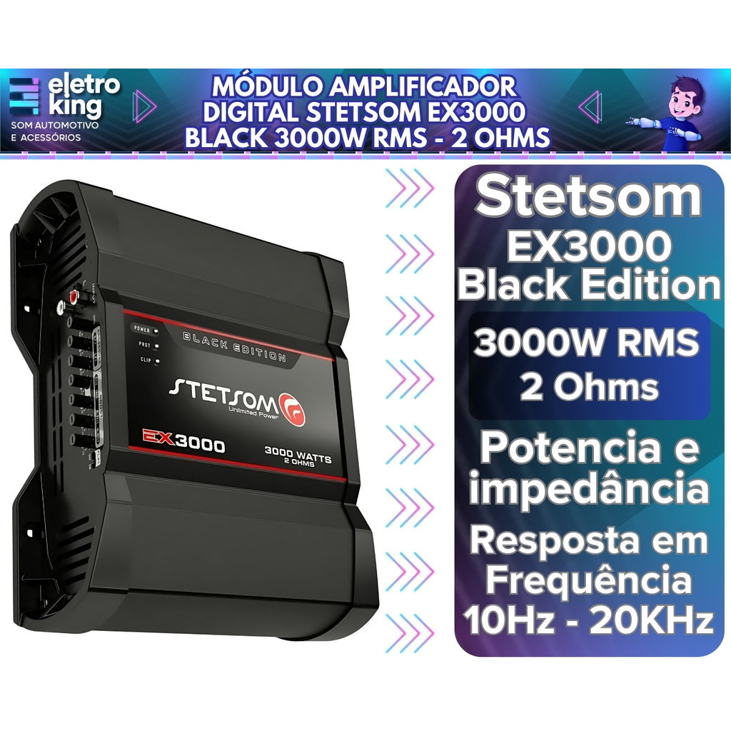 Módulo Amplificador Digital Stetsom EX3000 Black 3000 Watts Rms 1 Canal - 2 Ohms