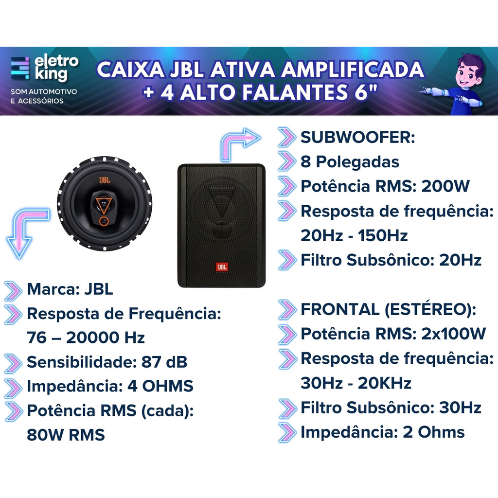 Caixa Jbl Ativa Amplificada Sw8ams 200w + 4 Alto Falantes 6