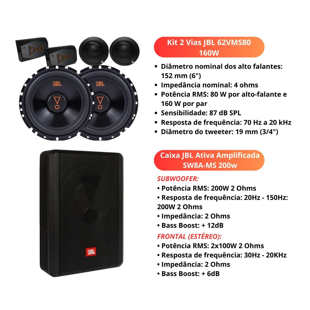 Caixa JBL Ativa Amplificada SW8A-MS 200w + Kit 2 Vias JBL 62VMS80 160W