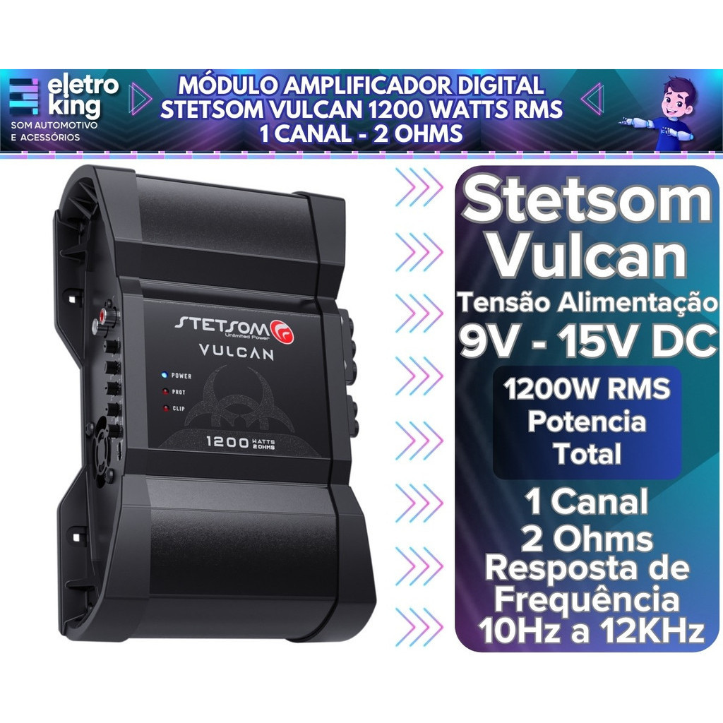 Módulo Amplificador Digital Stetsom Vulcan 1200 Watts Rms 1 Canal - 2 Ohms