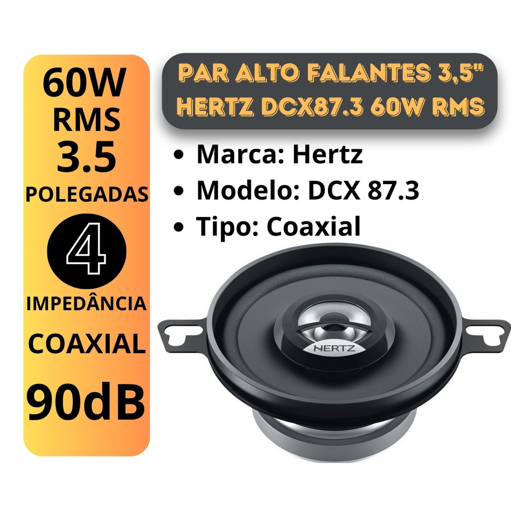 Par de Alto Falantes 3,5 Hertz Coaxial DCX87.3 - 60 Watts Rms