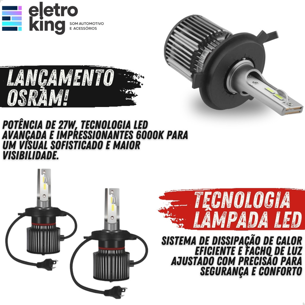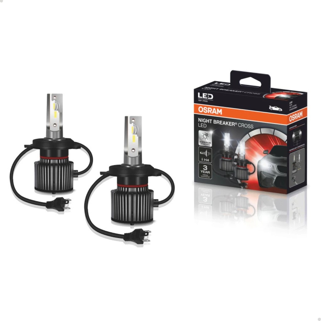 Par LED Osram H4 Night Breaker Cross 27/27W 12V 6000K Efeito Xenon Farol Carro Alta Intensidade