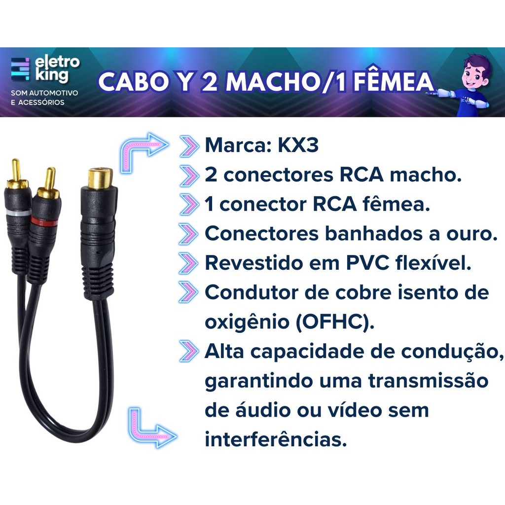 Kit 05 Cabo Rca Y Flexível 2 Macho 1 Fêmea Som Automotivo