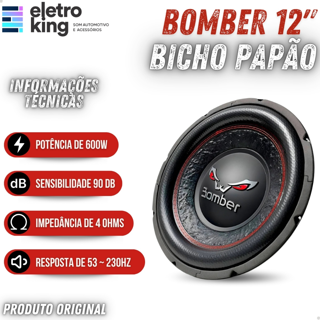 Subwoofer Alto Falante 12 polegadas Bomber Bicho Papão 600 Watts RMS 4 Ohms Som Automotivo