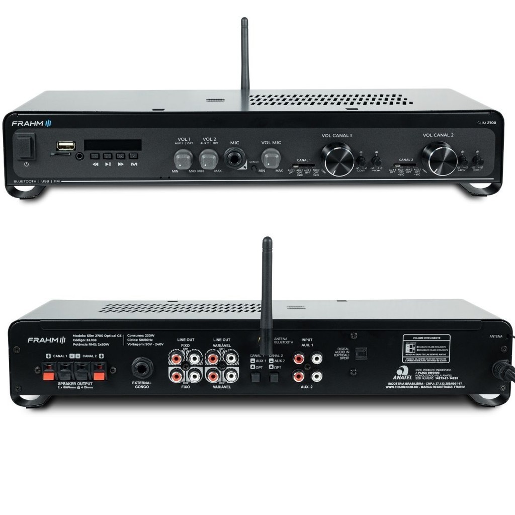 Amplificador Frahm Slim 2700 Optical G5 BT/USB/SD/AUX 160 Watts Rms 2 Canais 4 Ohms - Bivolt