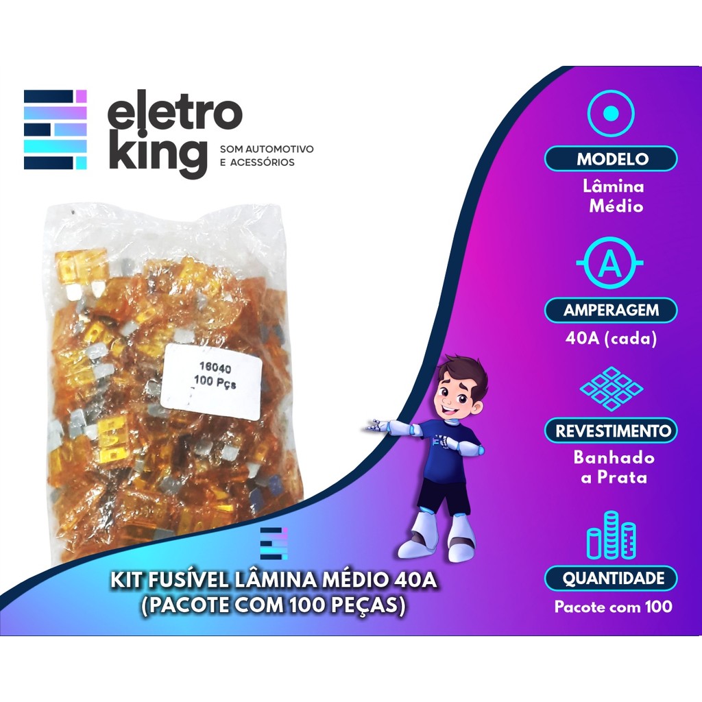 Kit Fusível Lâmina Médio 40a (Pacote com 100 Peças)
