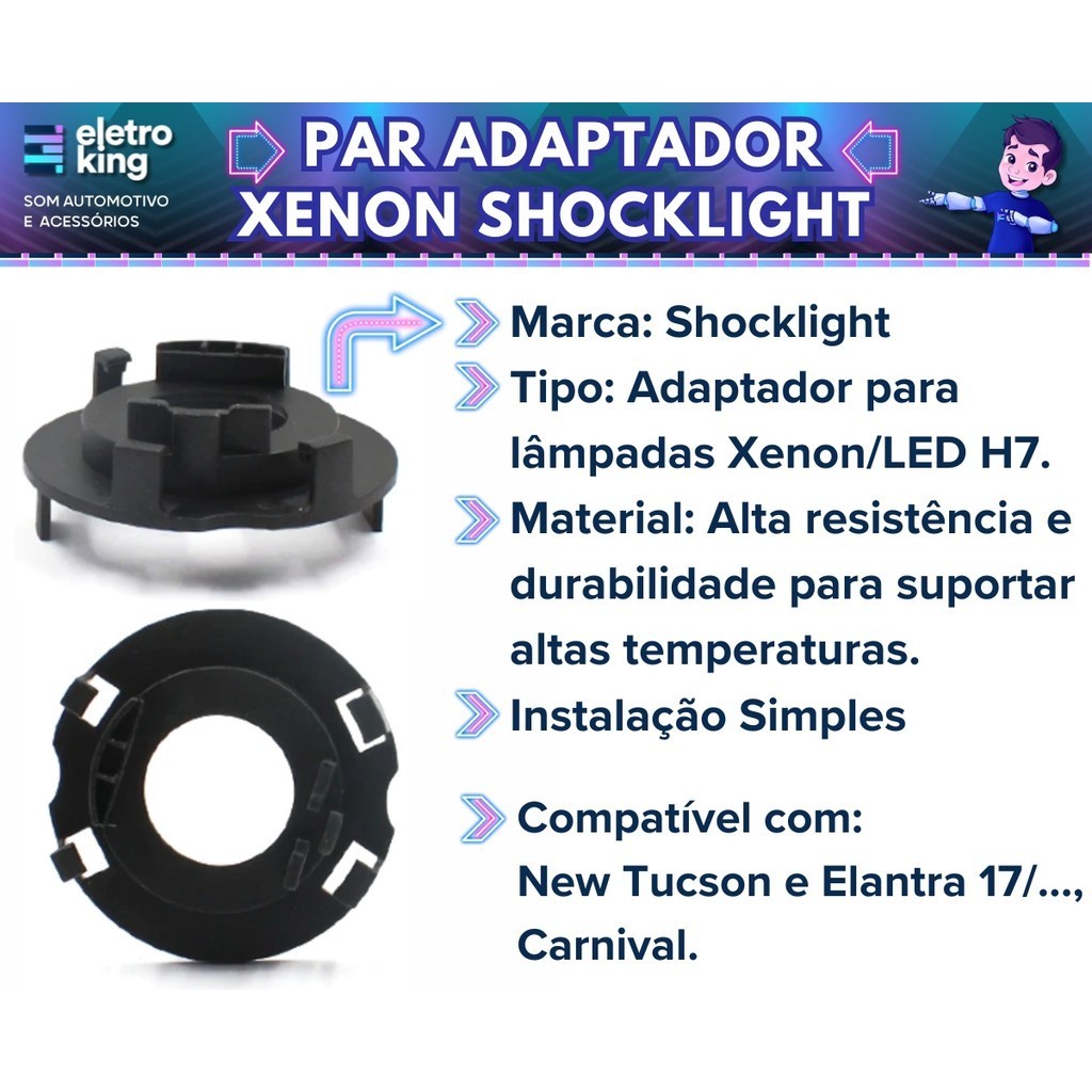 Par Adaptador Xenon/Led H7 New Tucson e Elantra 17>... Carnival - SLL-19-H7