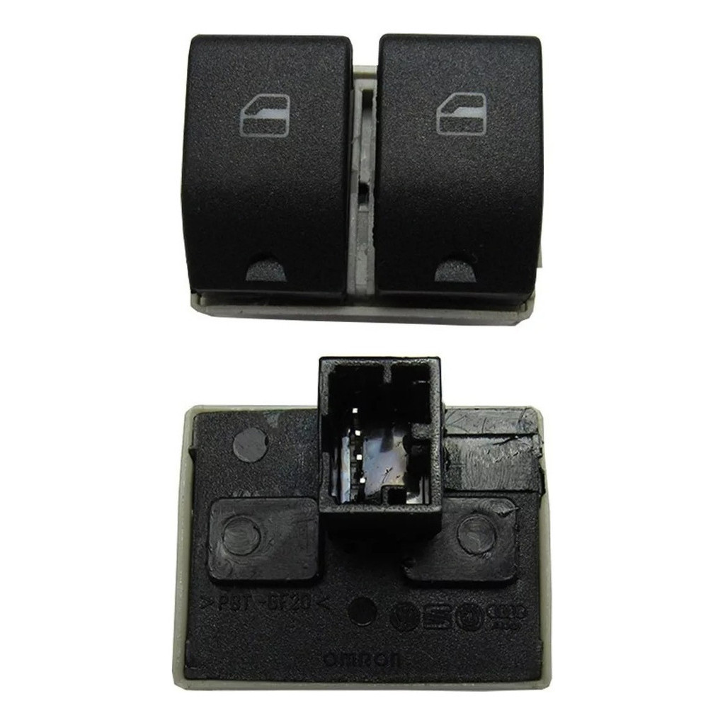 Botão de Vidro Elétrico Duplo Gol G4/G5/Fox/Crossfox/Polo - 2 Estagios (Fundo Preto)