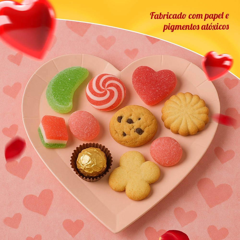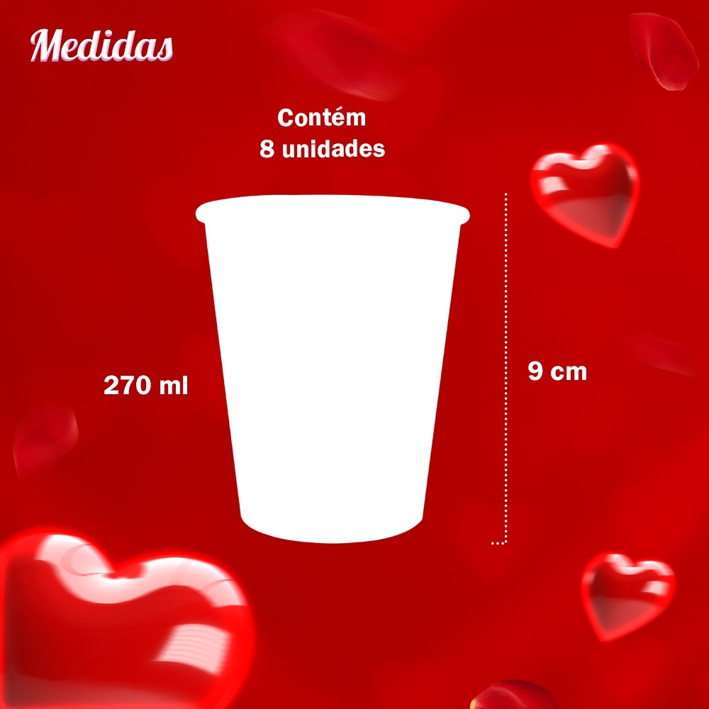 Kit Dia Dos Namorados Prato e Copo Descartável Coração Rosa Coração 16 Unidades Silver Festas