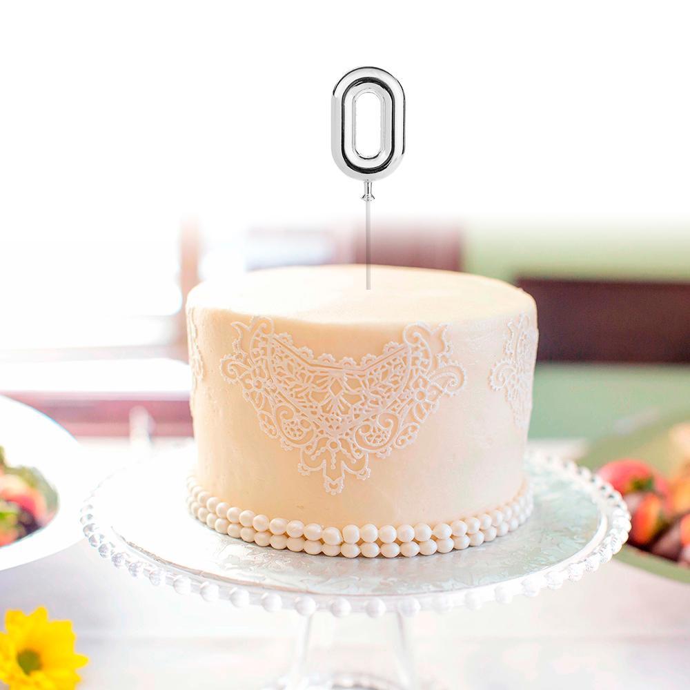 Topo de Bolo Prateado Número - SilverFestas: brilho e elegância para sua celebração