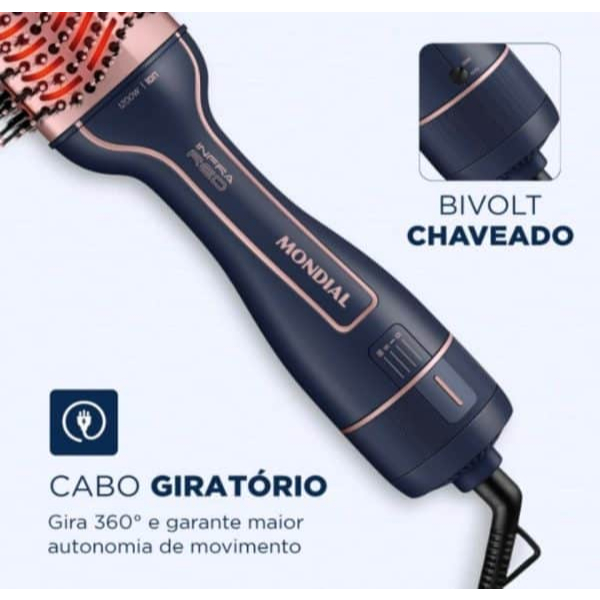 Escova Secadora Mondial ES-01 Infrared Bivolt 1200W Alisadora Modeladora Profissional Anti Frizz