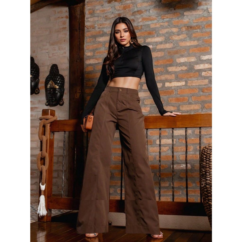 Calça Wide Leg em Tecido Encorpado