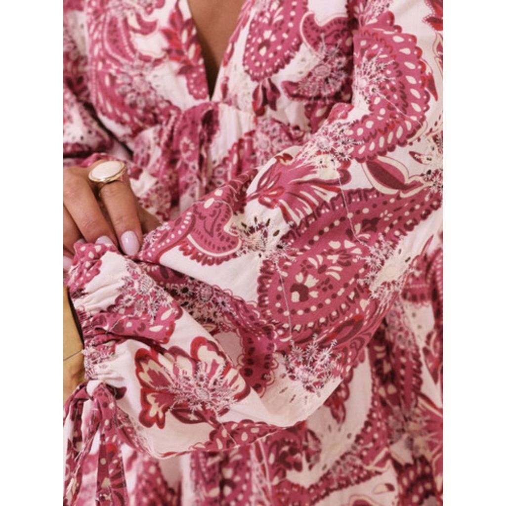 Vestido em Laise Estampada com Mangas Longas