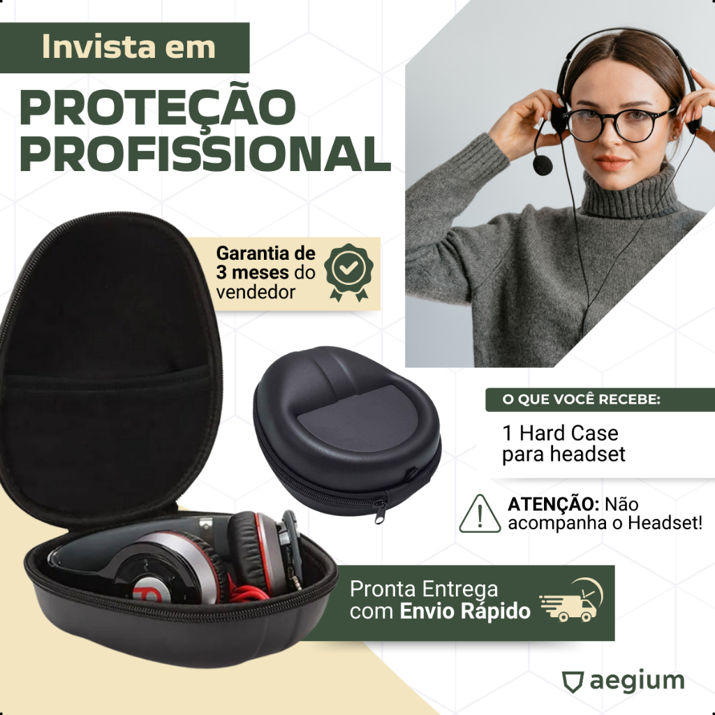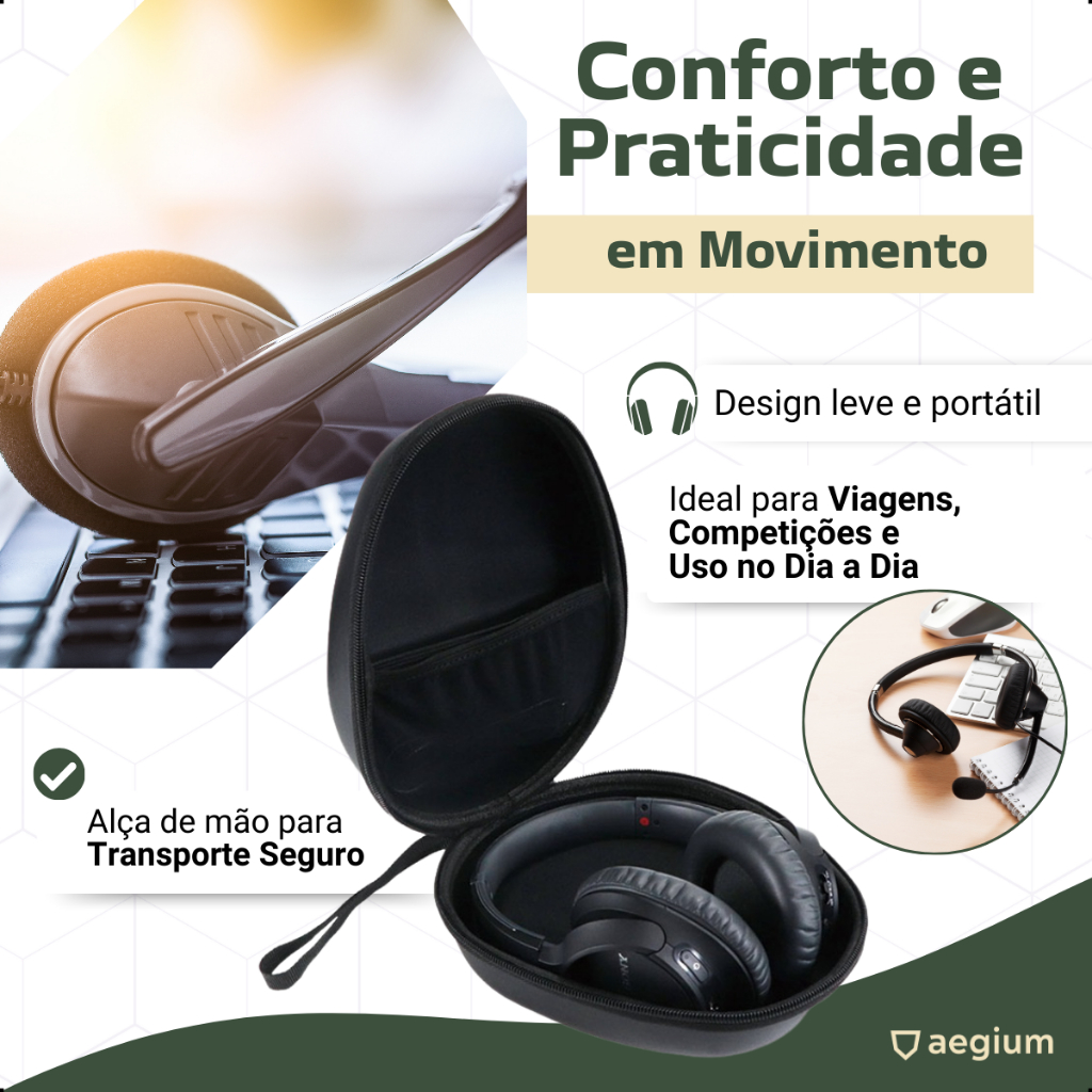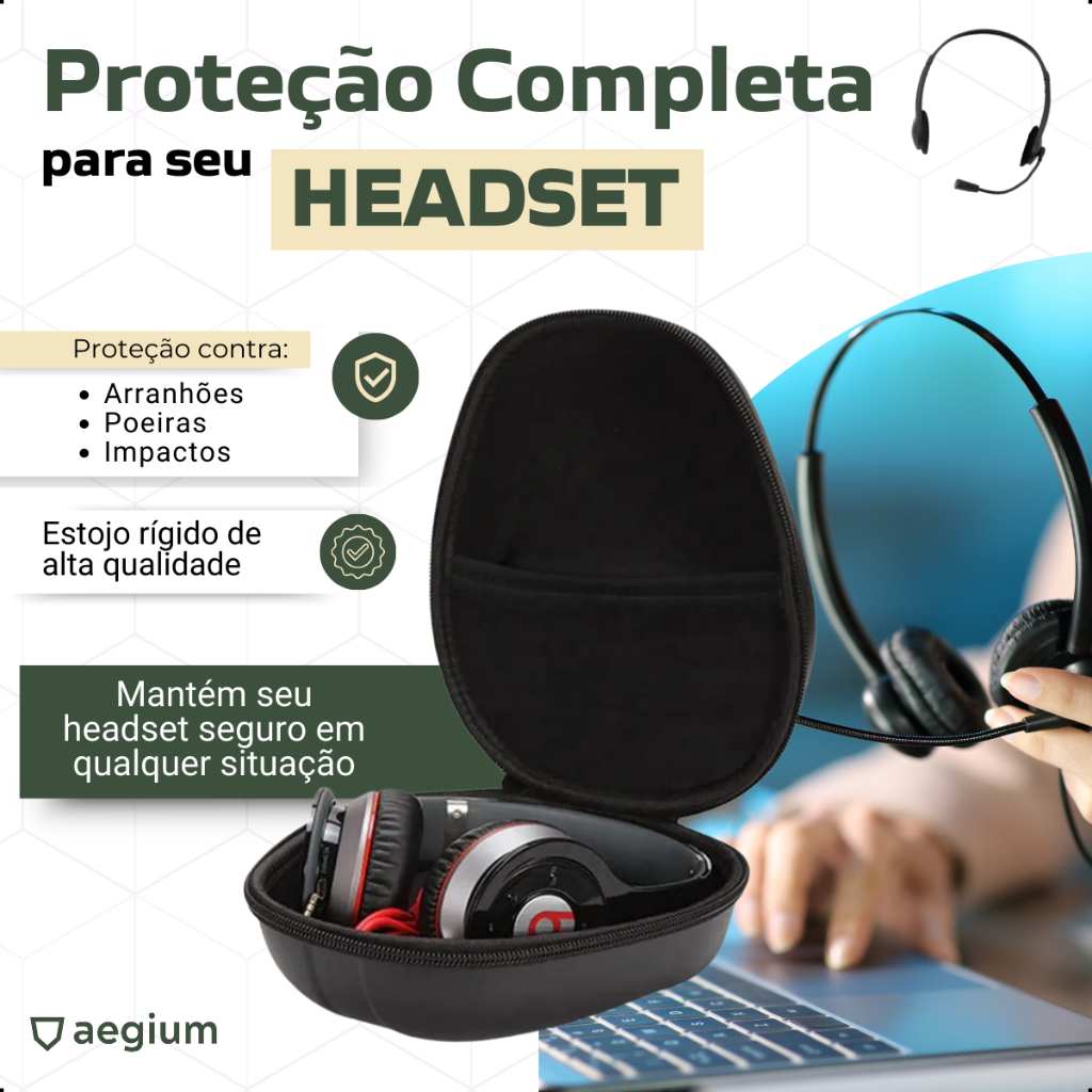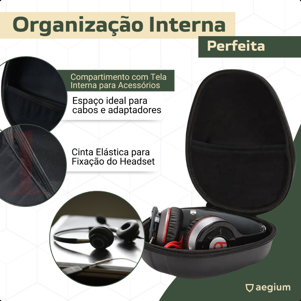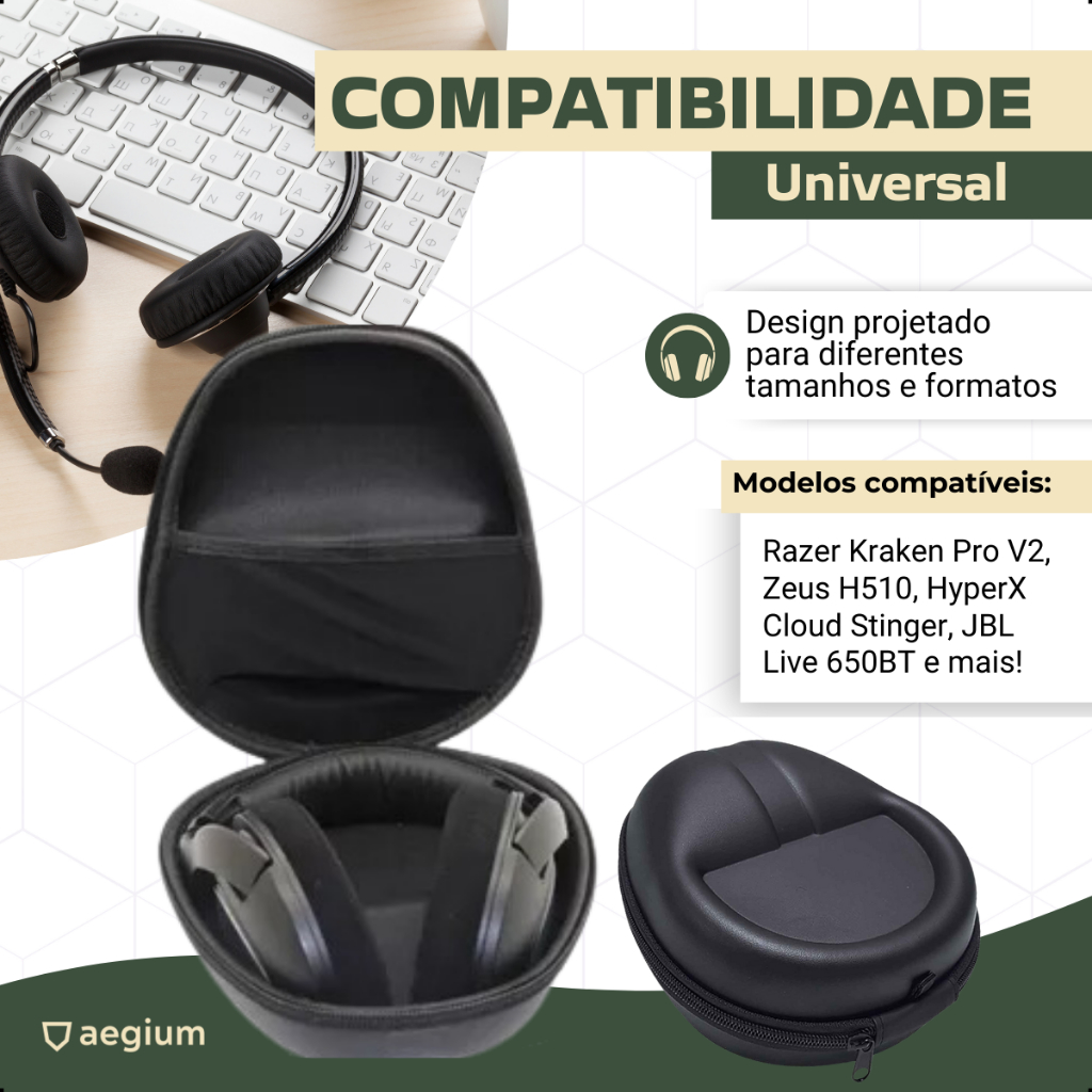 Hard Case Aegium compati'vel com Headset Hy perx Cloud 2 Silver Alpha S Stinger Mix Stinger Core II