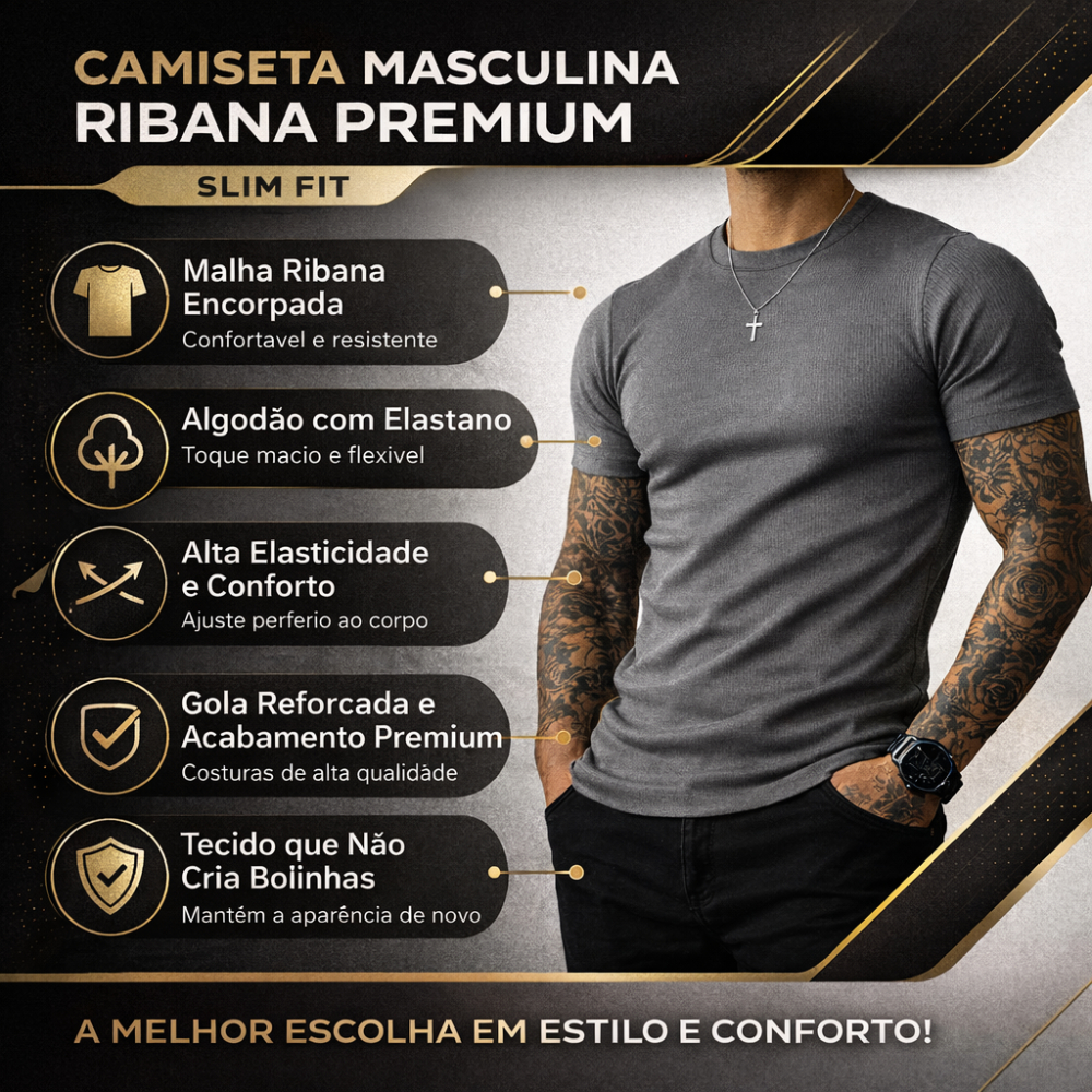 Camiseta Masculina Básica Canelada Slim Fit Confortável Premium Envio Imediato