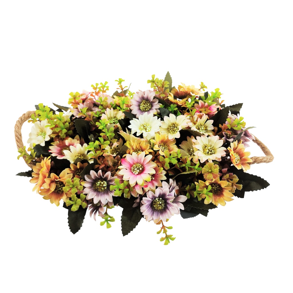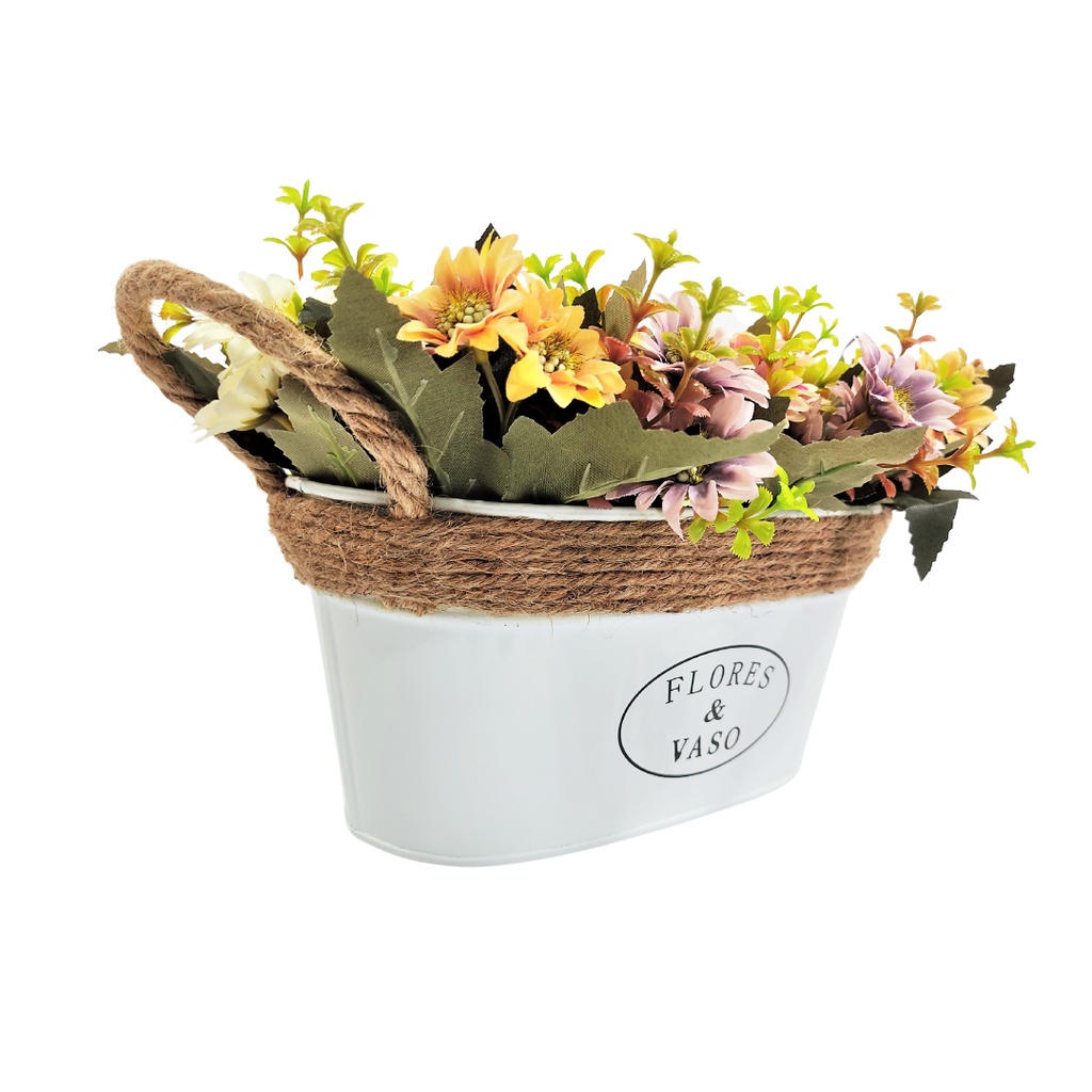 Cachepo Arranjo Flores & Vaso Floreira Metal E Alça De Corda