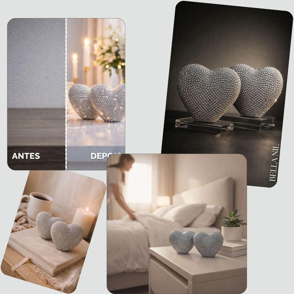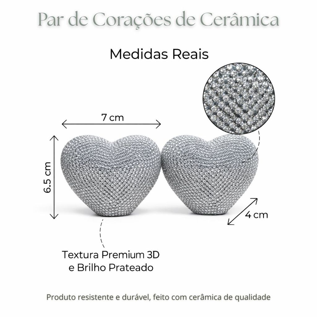 Decoração Tendência Coração Cerâmica Grande 02 Unidades