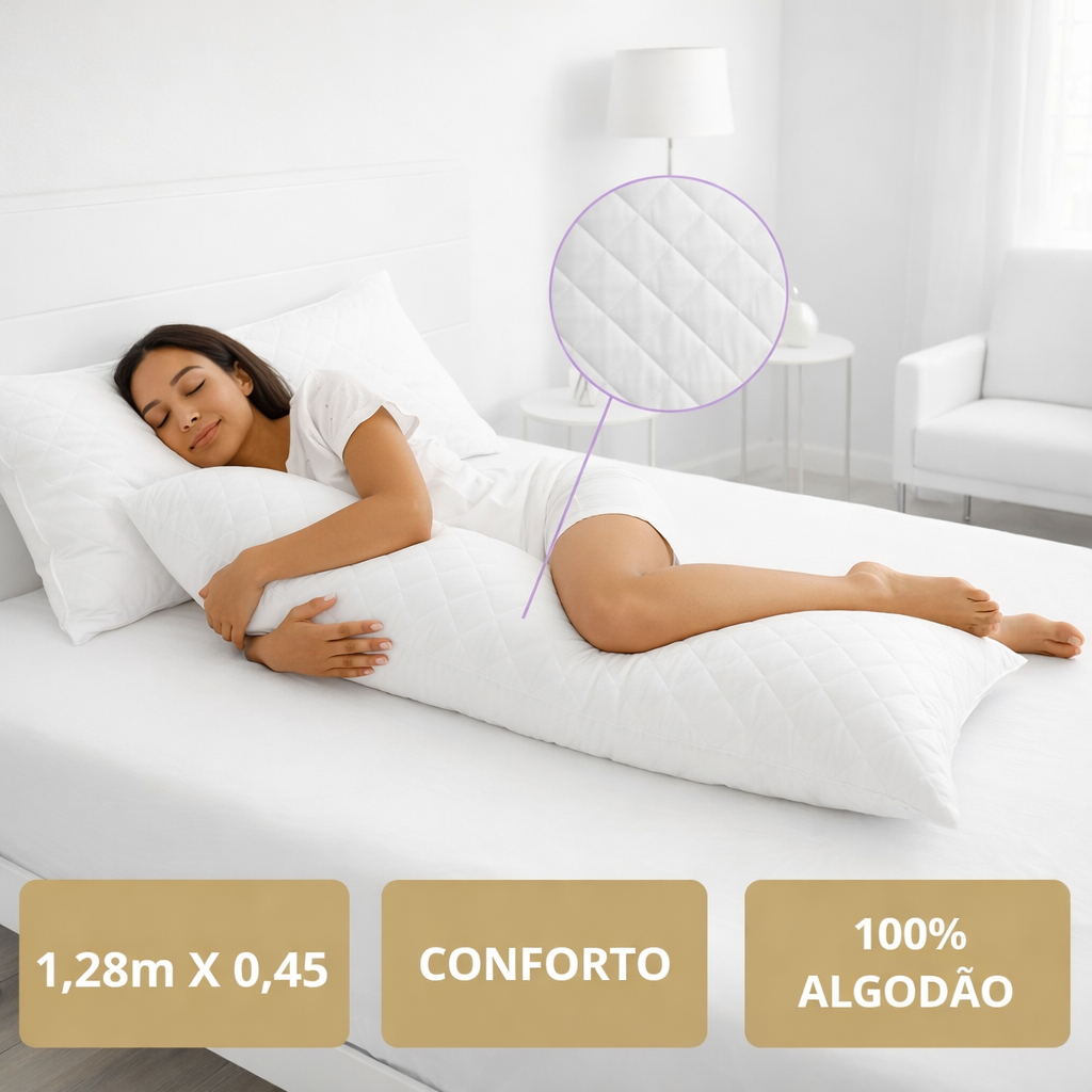 Travesseiro Xuxão de Corpo Body Pillow 100% Algodão para Gestante Confortável Antialérgico