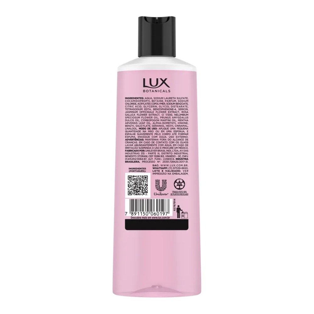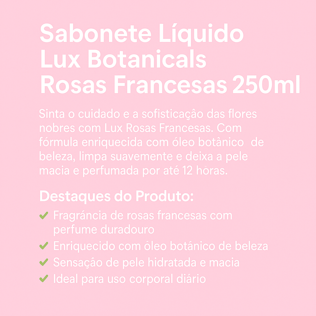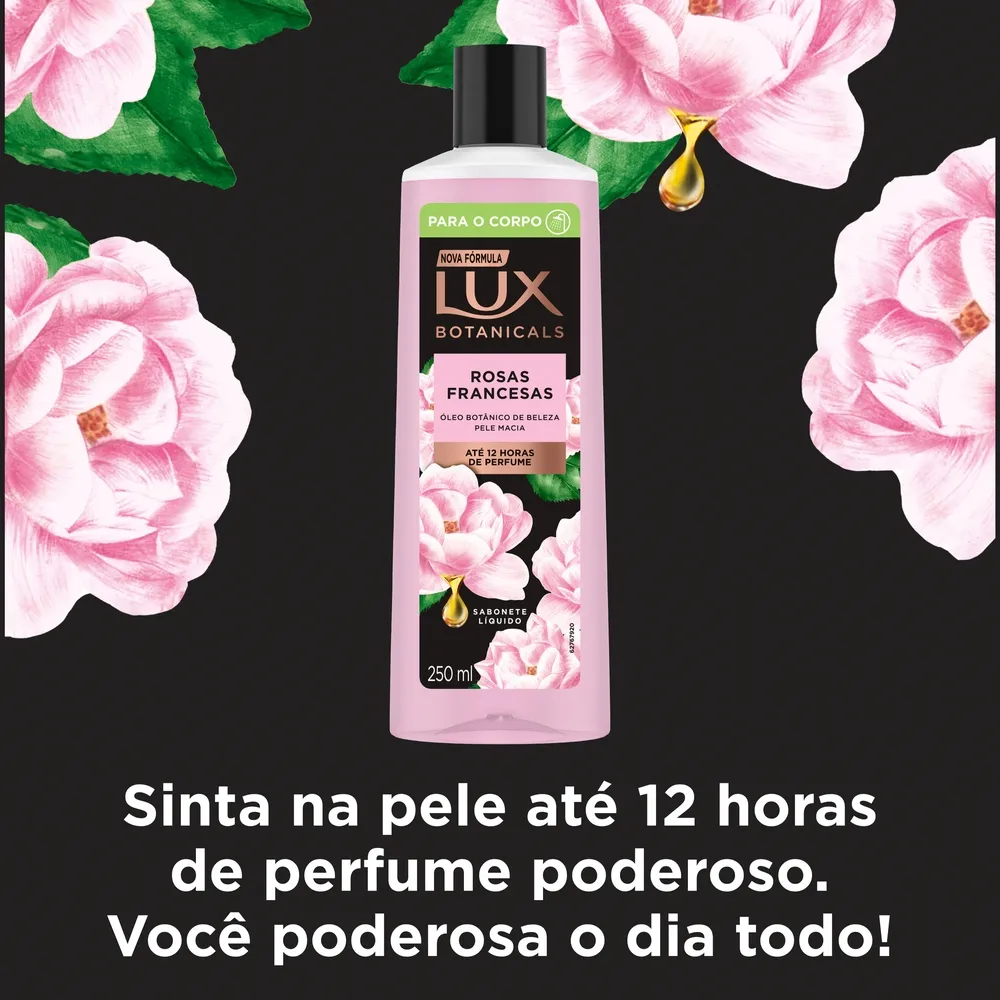 Sabonete Líquido Lux Botanicals Rosas Francesas 250ml | Até 12h de Perfume | Pele Macia e Perfumada | Com Óleo Botânico