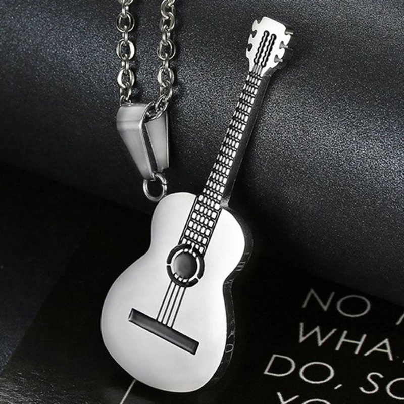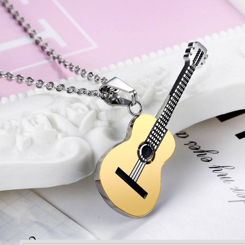 Colar Pingente Música Violão Acústico Aço Inoxidável 60cm