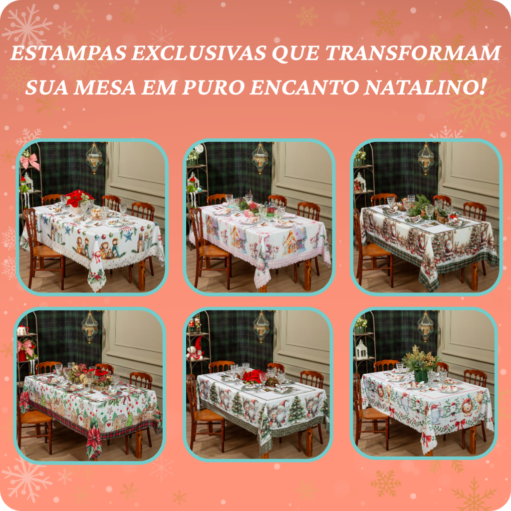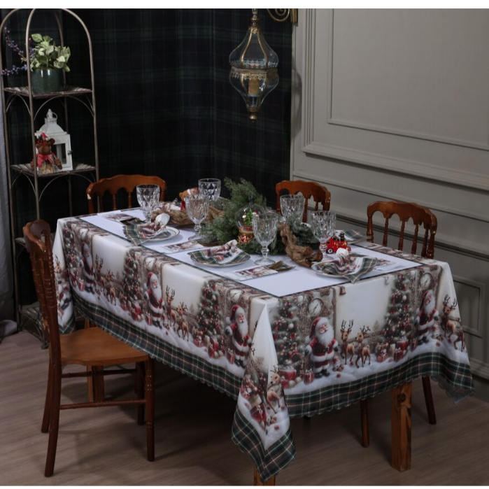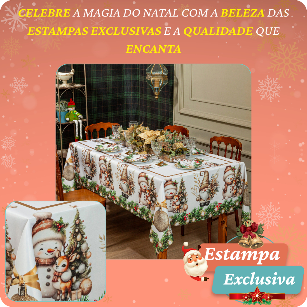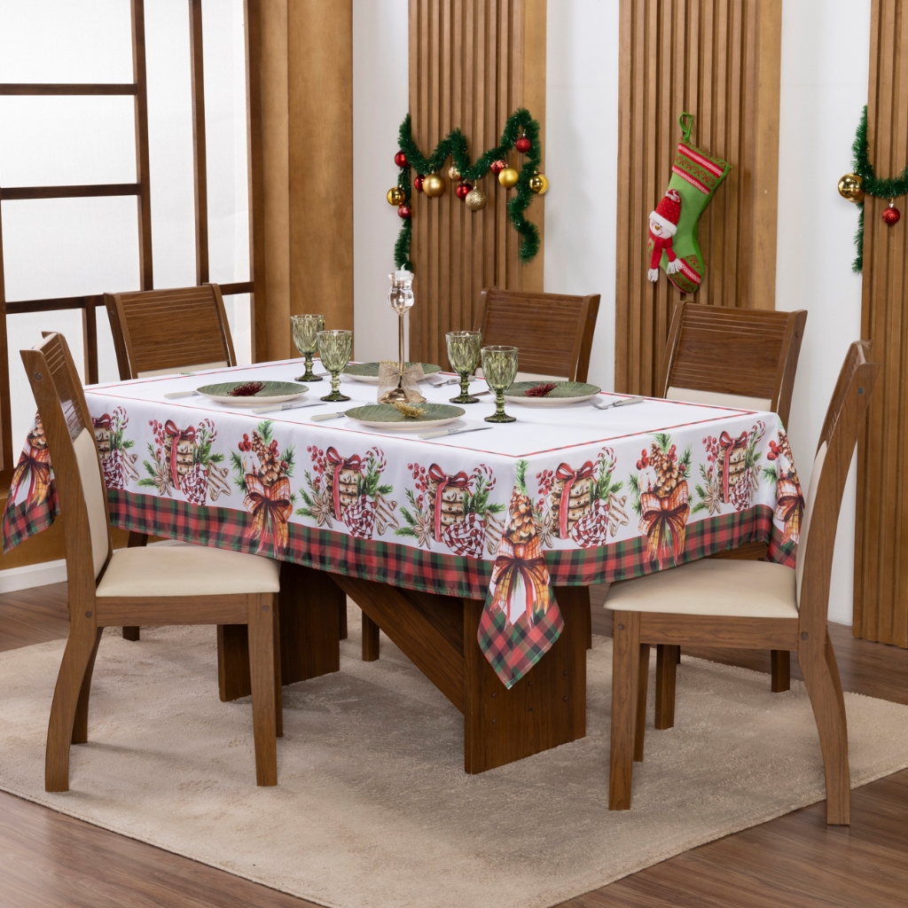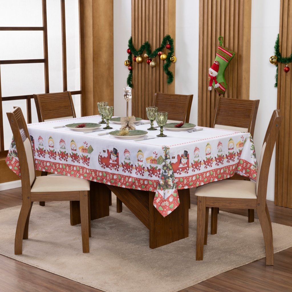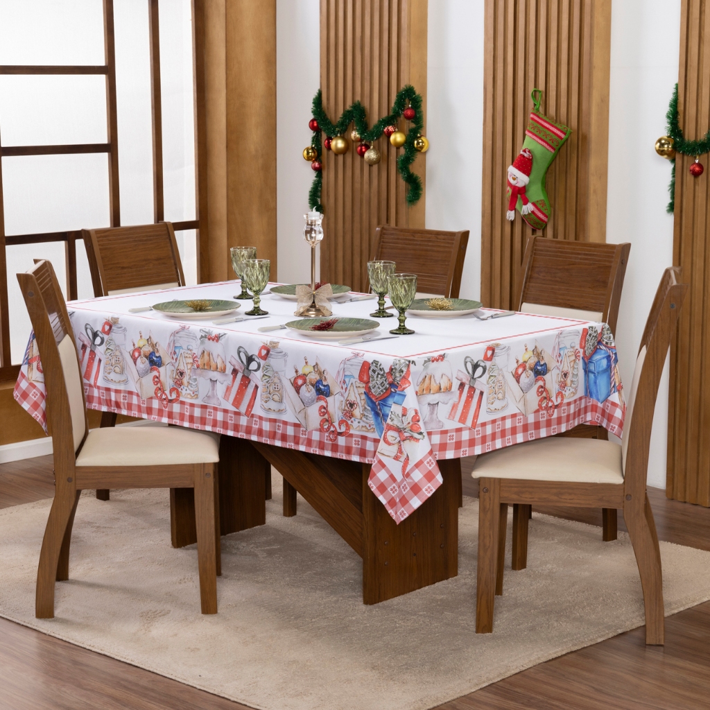 Toalha de Mesa Natalina 2,20x1,50 Retangular Para 6 Lugares Estampada Decorativa