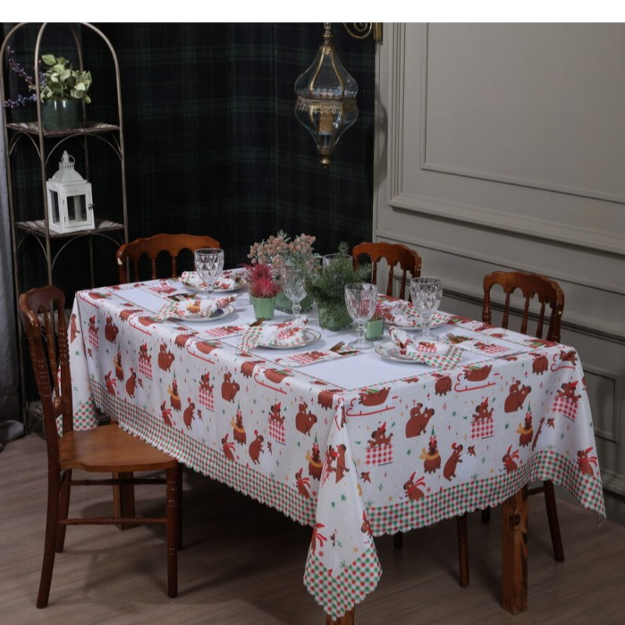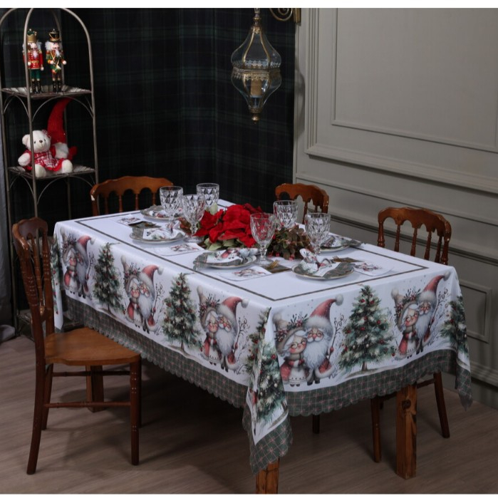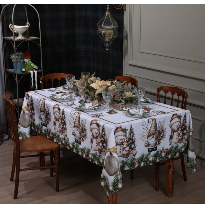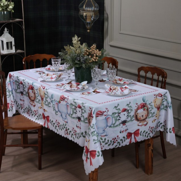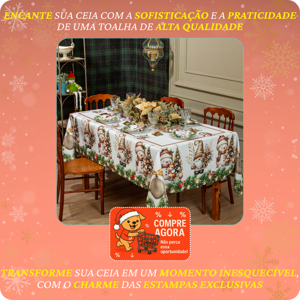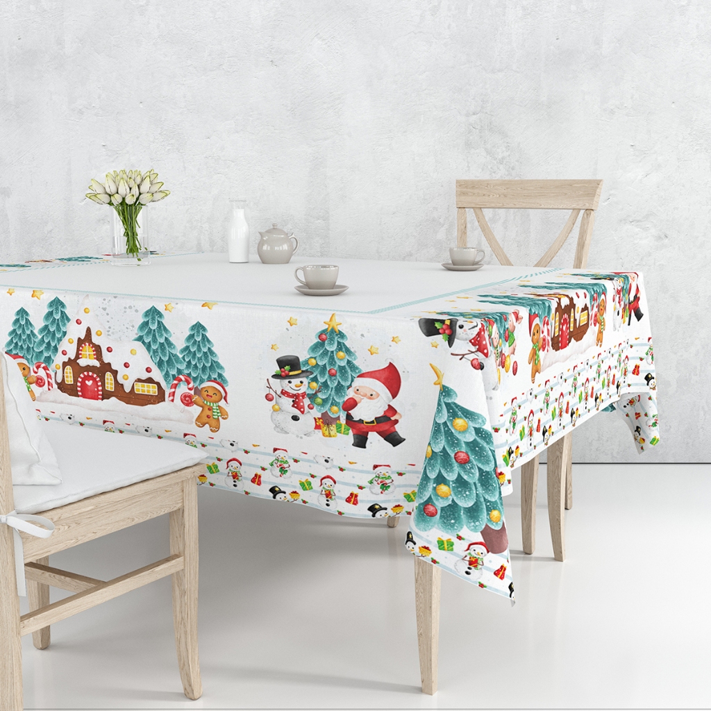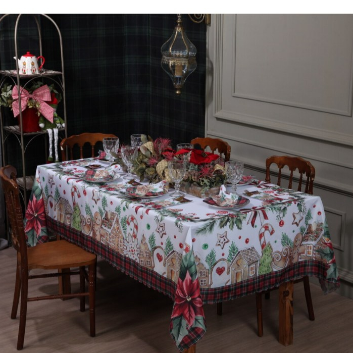 Toalha de Mesa Natalina 2,20x1,50 Retangular Para 6 Lugares Estampada Decorativa