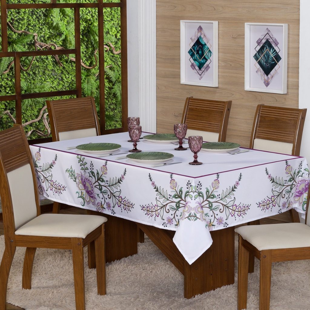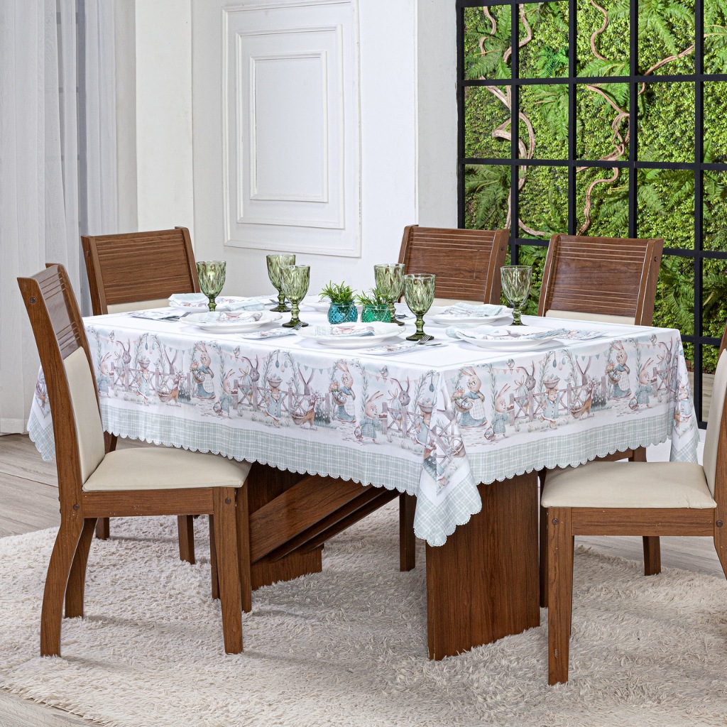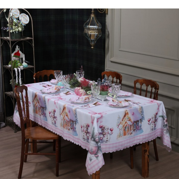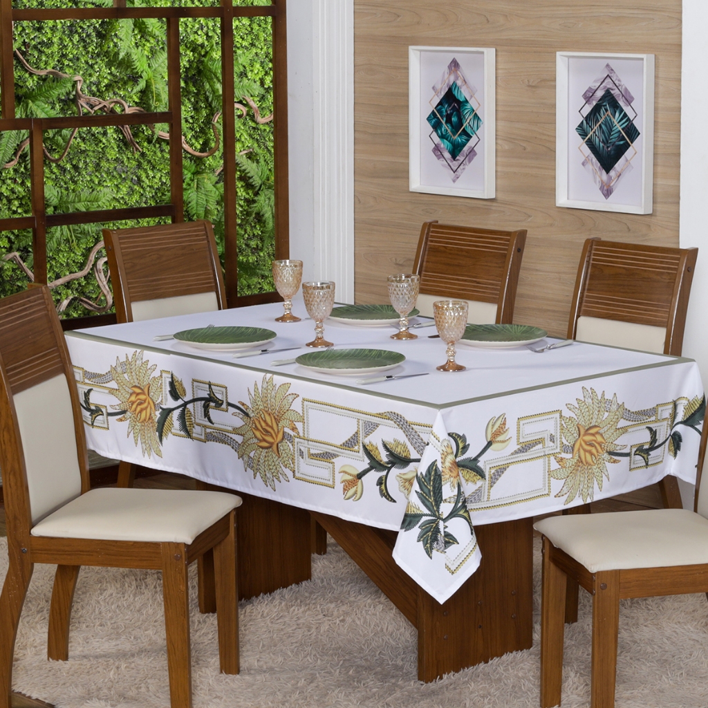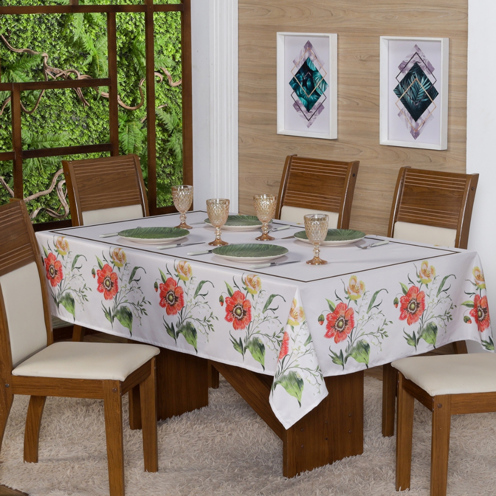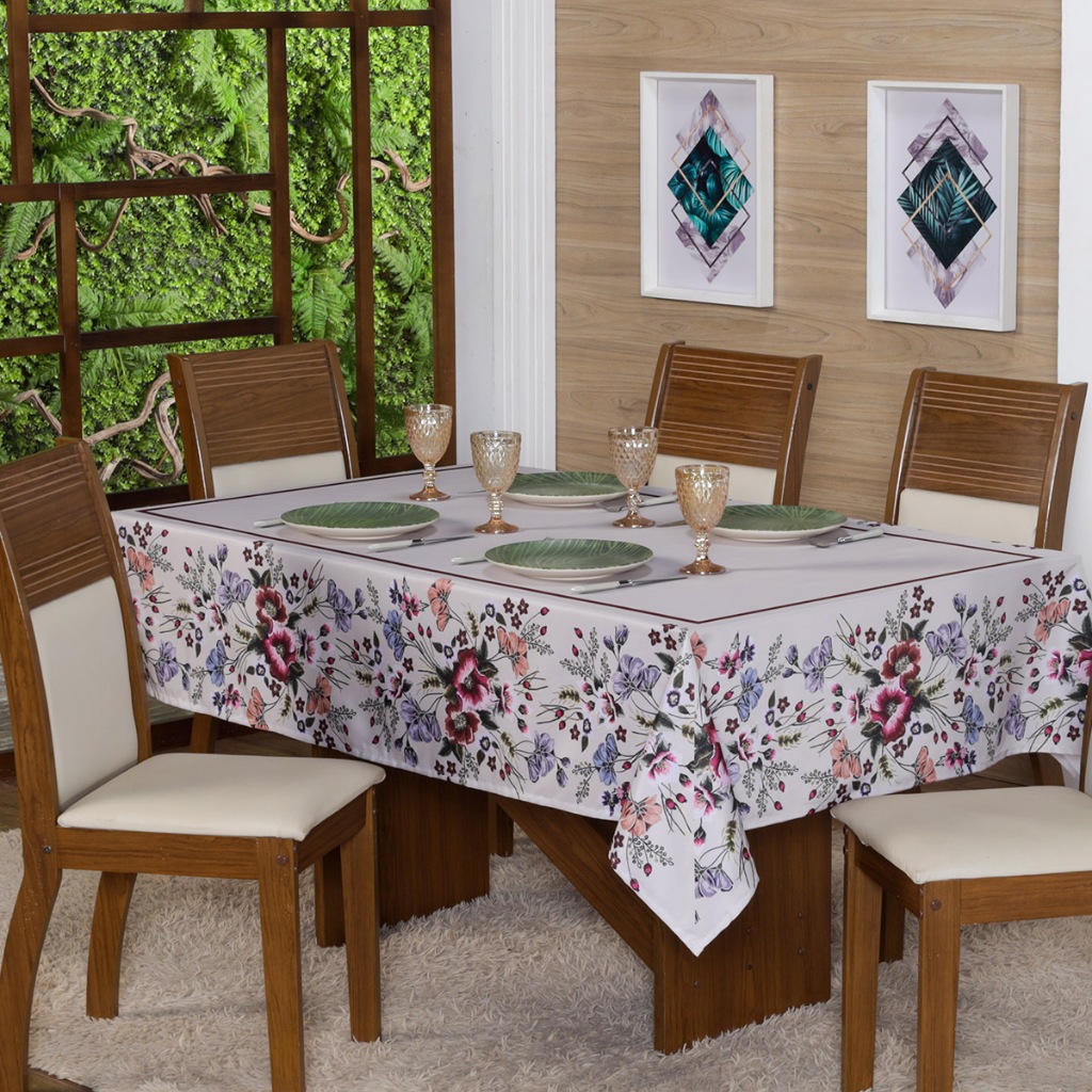 Toalha de Mesa Natalina 2,20x1,50 Retangular Para 6 Lugares Estampada Decorativa