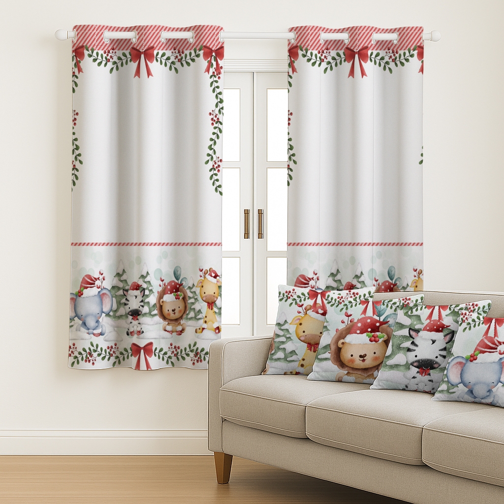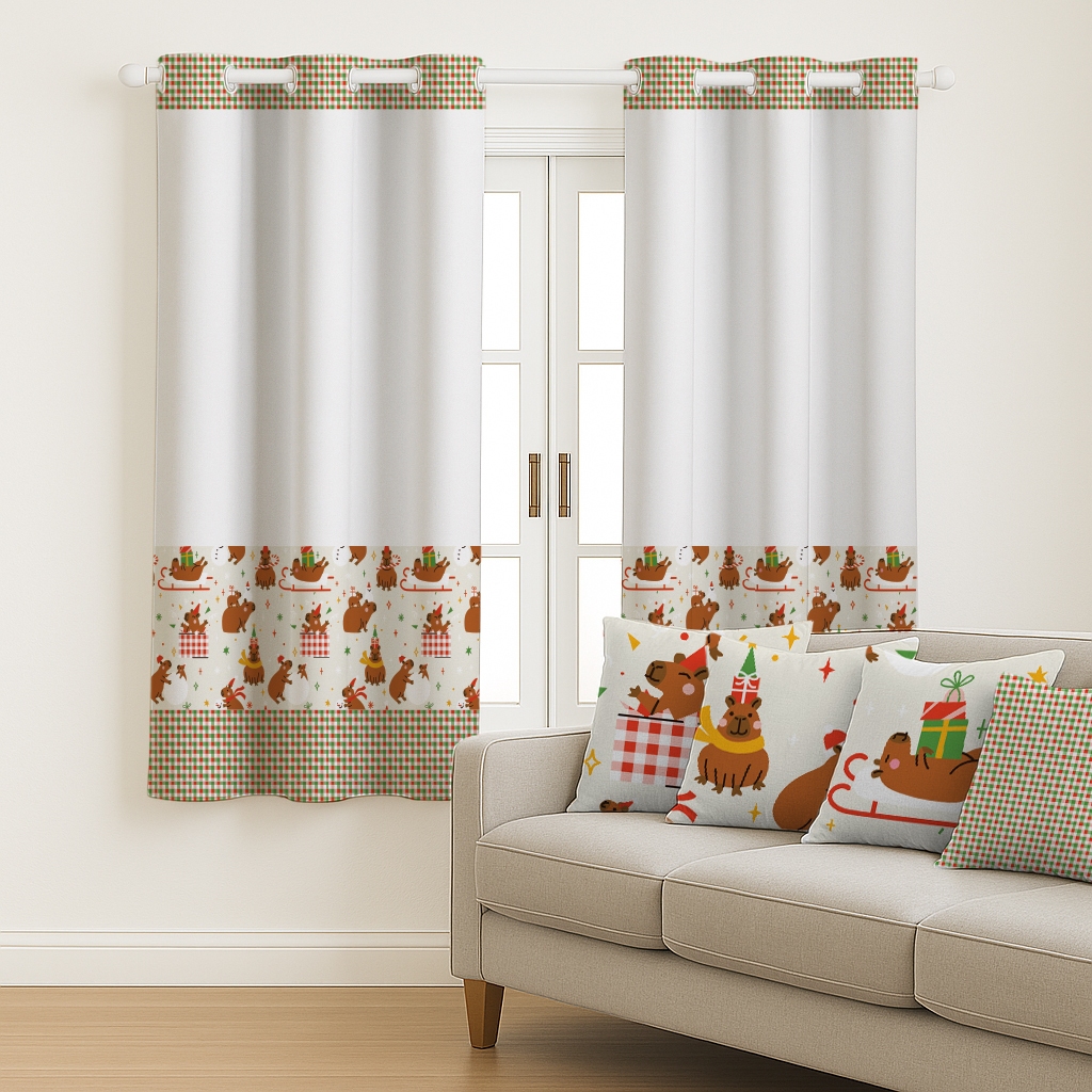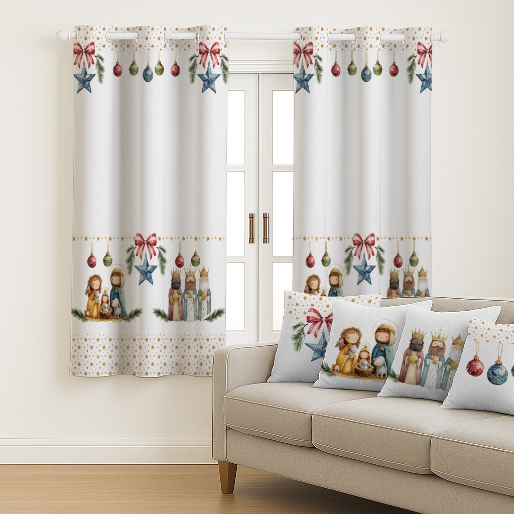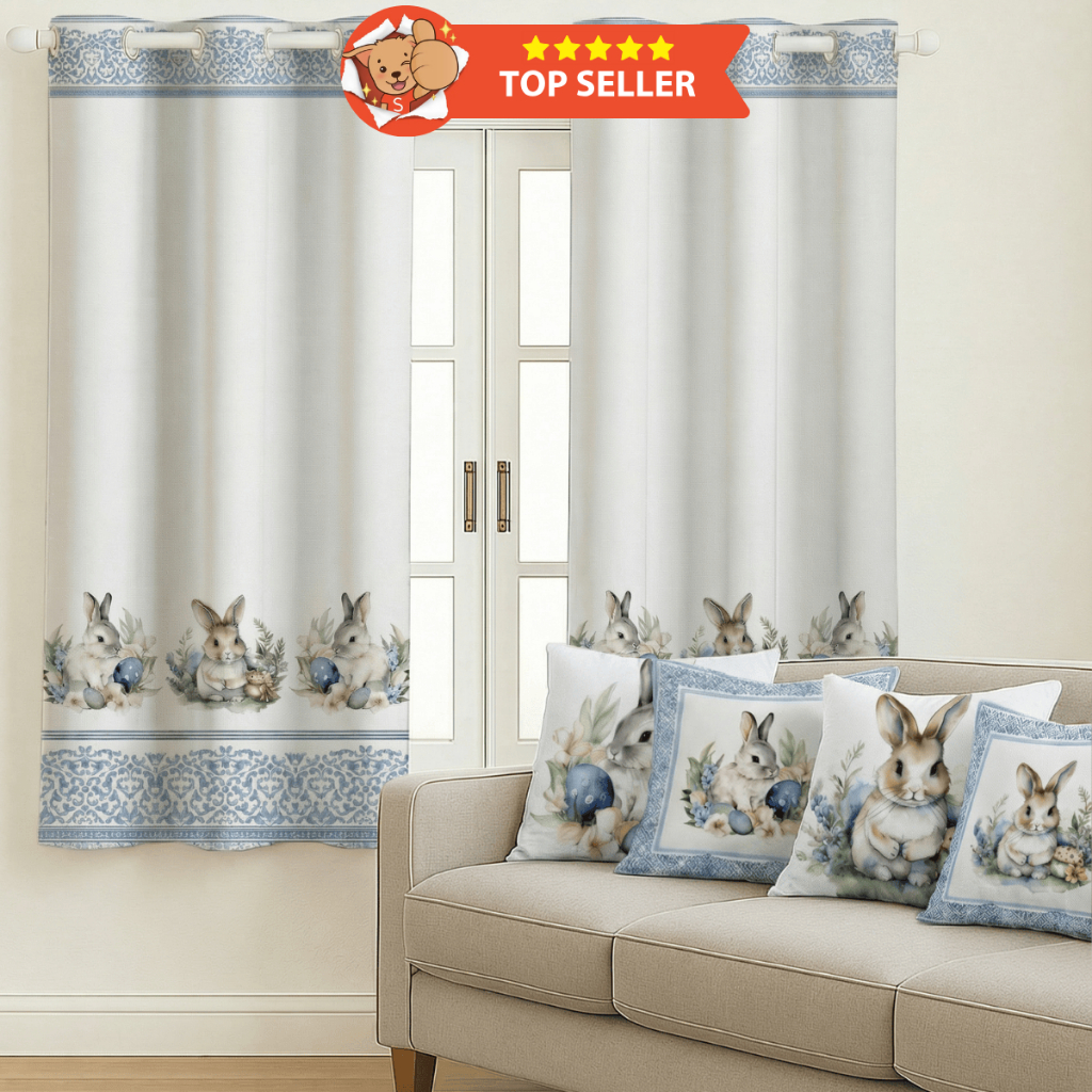 Kit Cortina Pascoa 2,00x1,50 + 4 Capas de Almofada Estampadas Temas De Pascoa