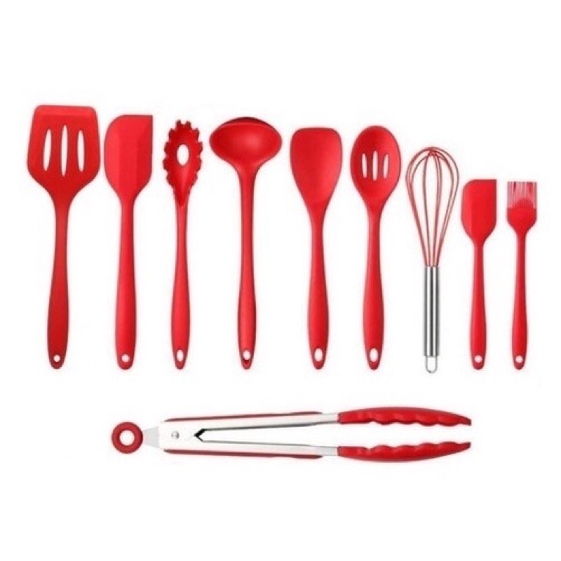 Kit com 10pçs e 5pçs Utensílios De Silicone Espátula Colher Escumadeira Concha Cozinha