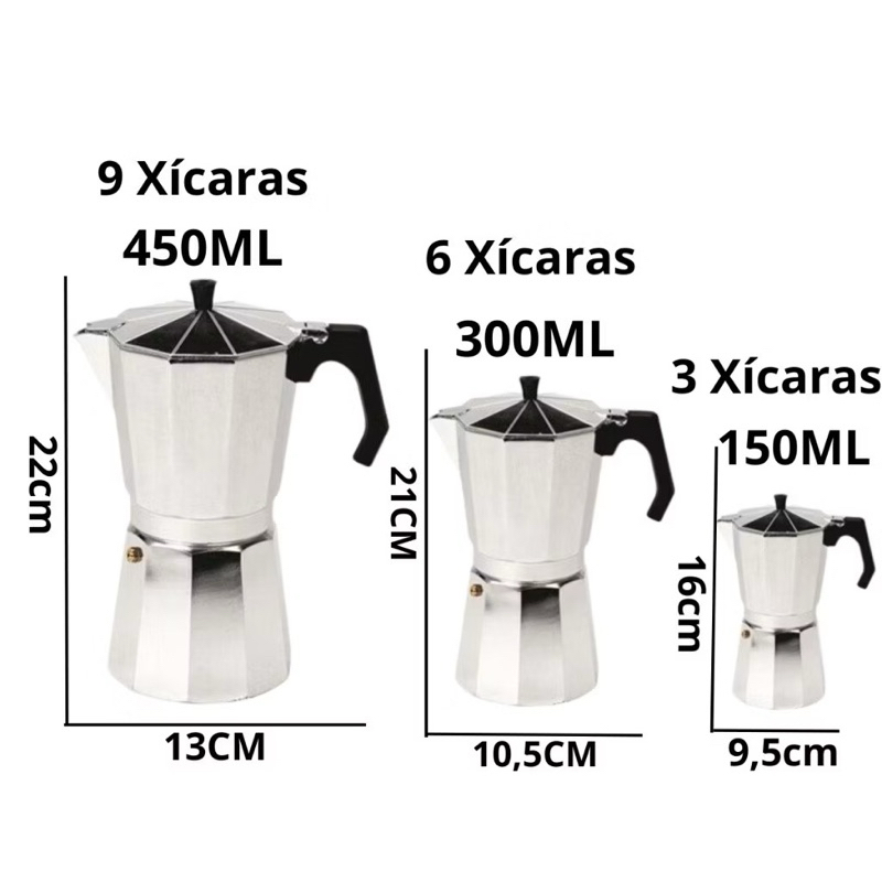 Cafeteira Italiana de Alumínio Café Expresso 6, 9,12 Xícaras Cafeteira Italiana Moka Express Aço