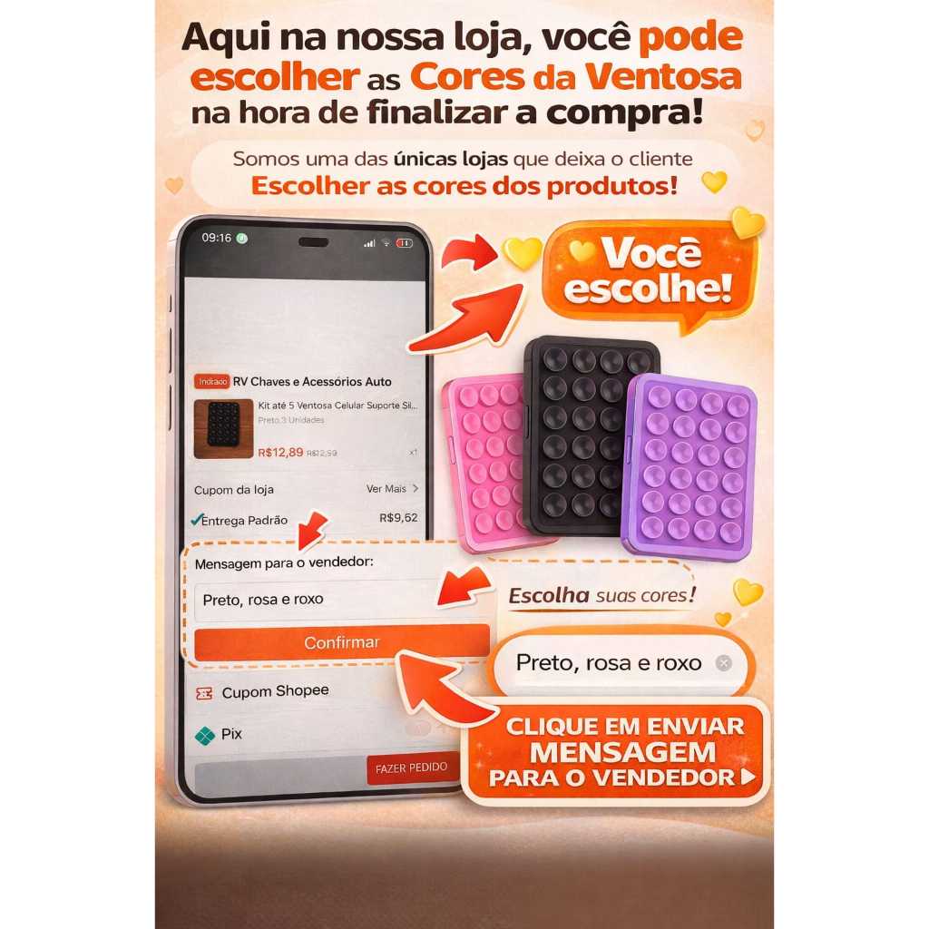 Kit Ventosas Celular Suporte Silicone Premium Capinha para Superfícies Lisas