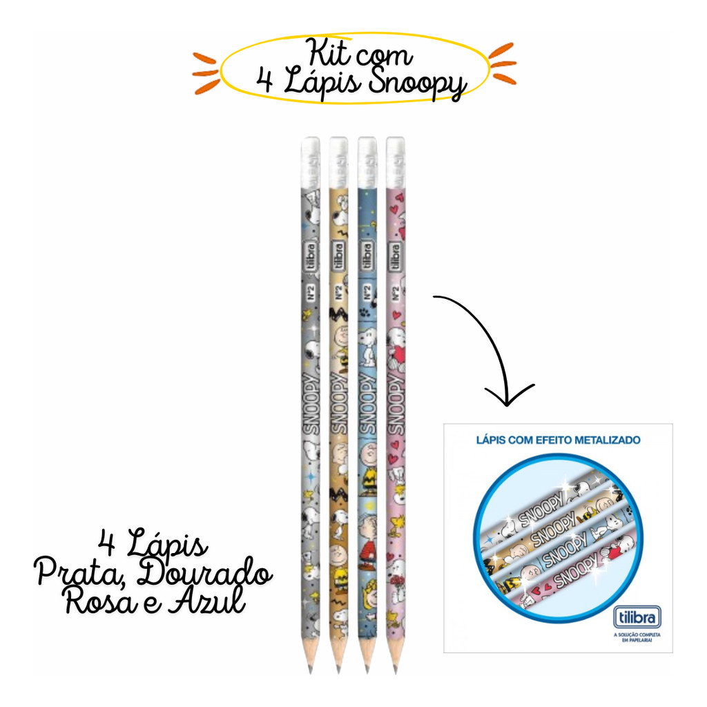Kit 4 Lápis De Escrever Snoopy No2 - Tilibra