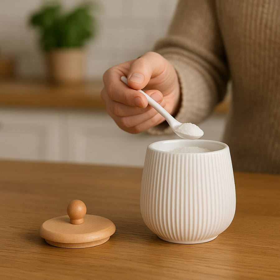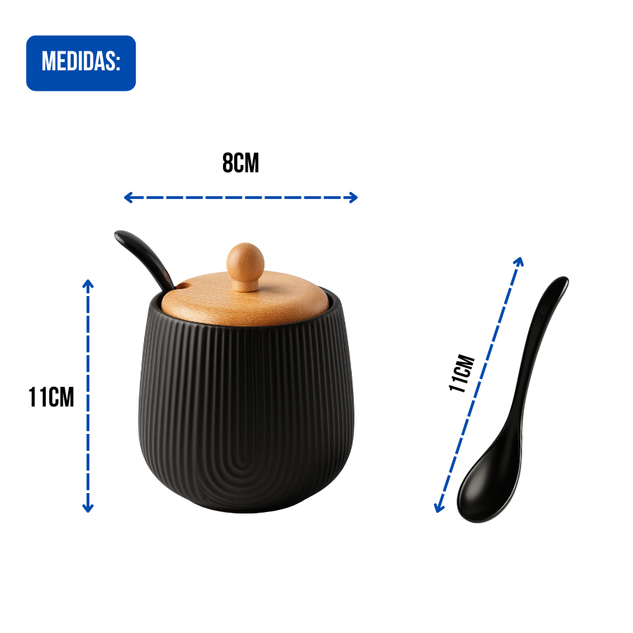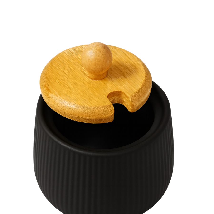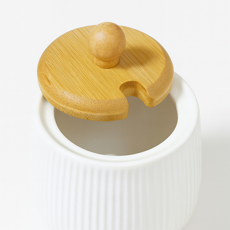 Açucareiro Em Porcelana Com Colher Tampa Bambu 360ml Oásis