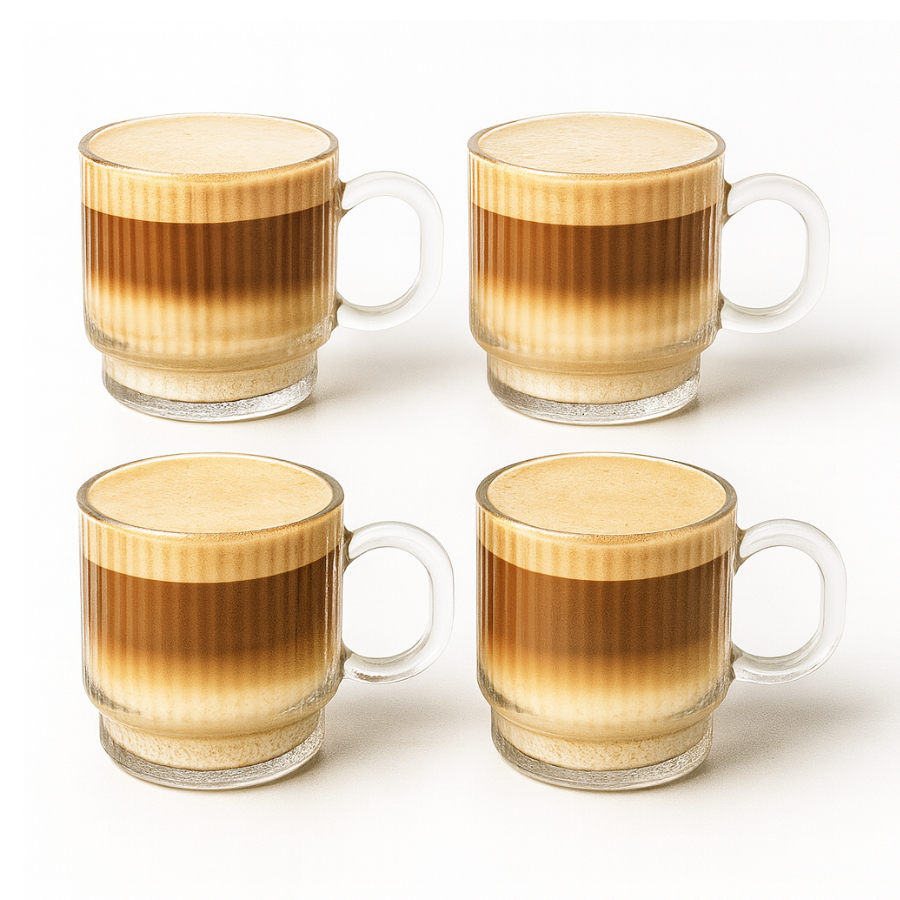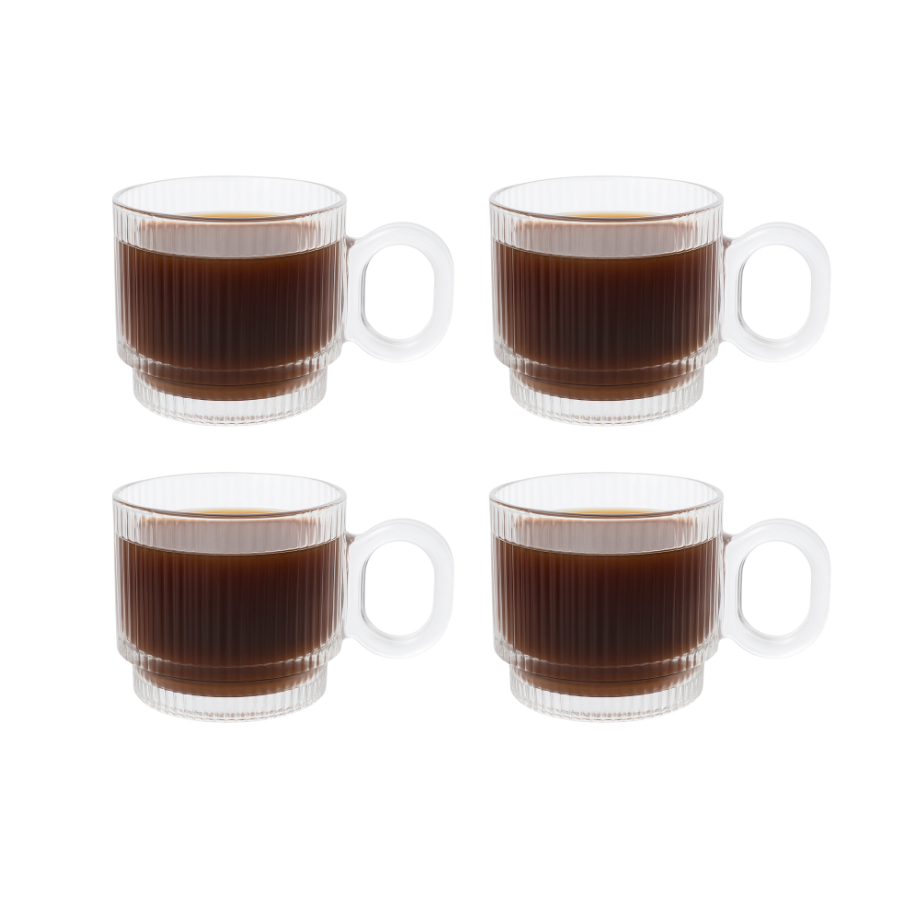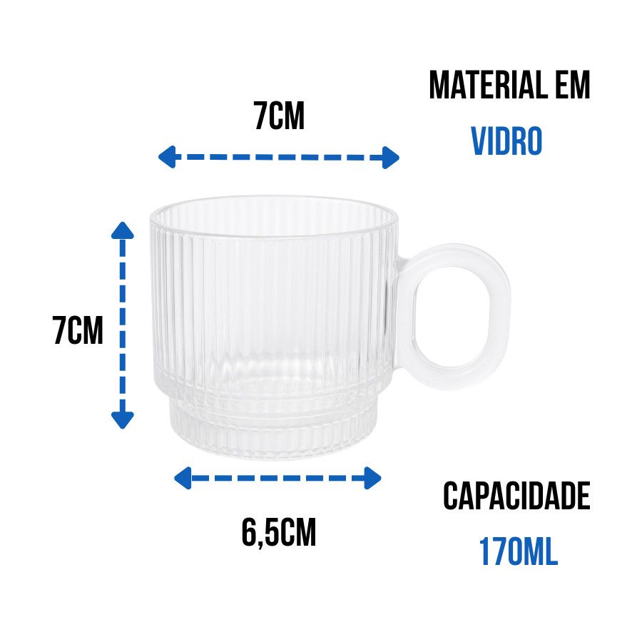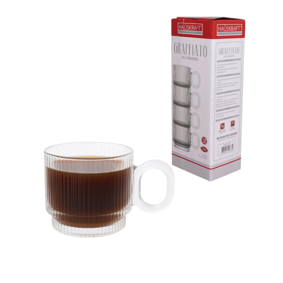 Jogo 4 Xícaras Em Vidro Graffiato 170ml Canecas de Café Chá