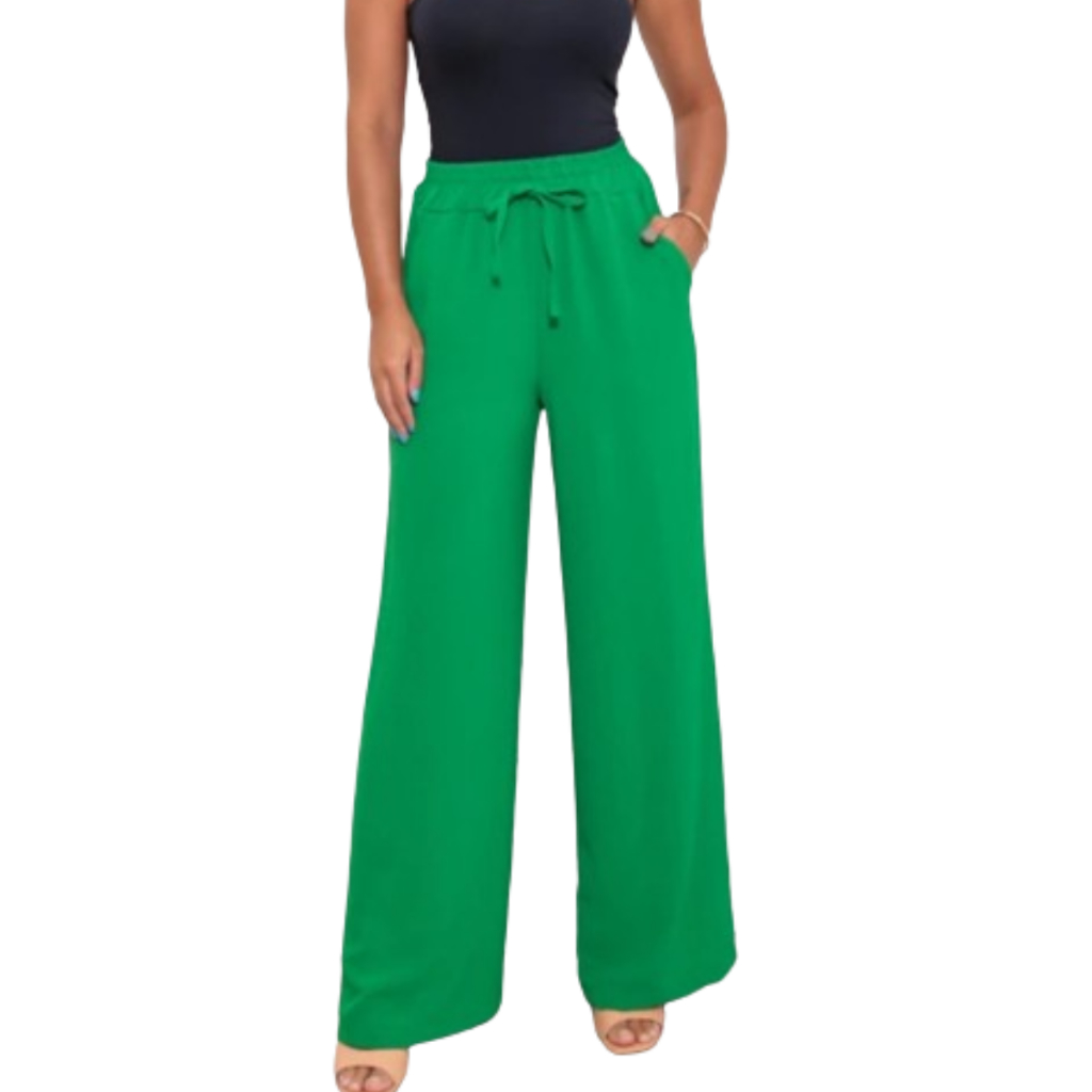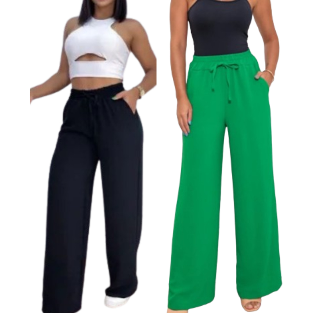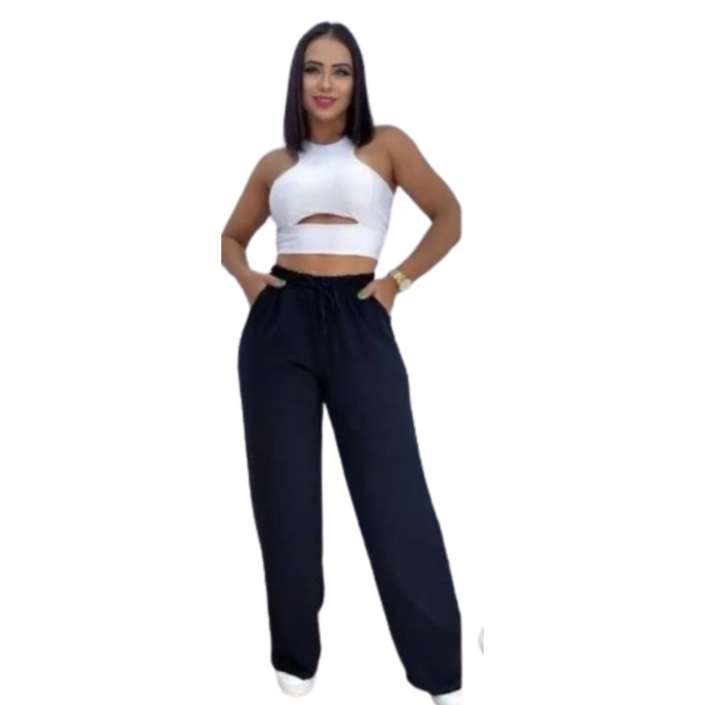 Calça Pantalona Feminina Com Bolso Cintura Alta