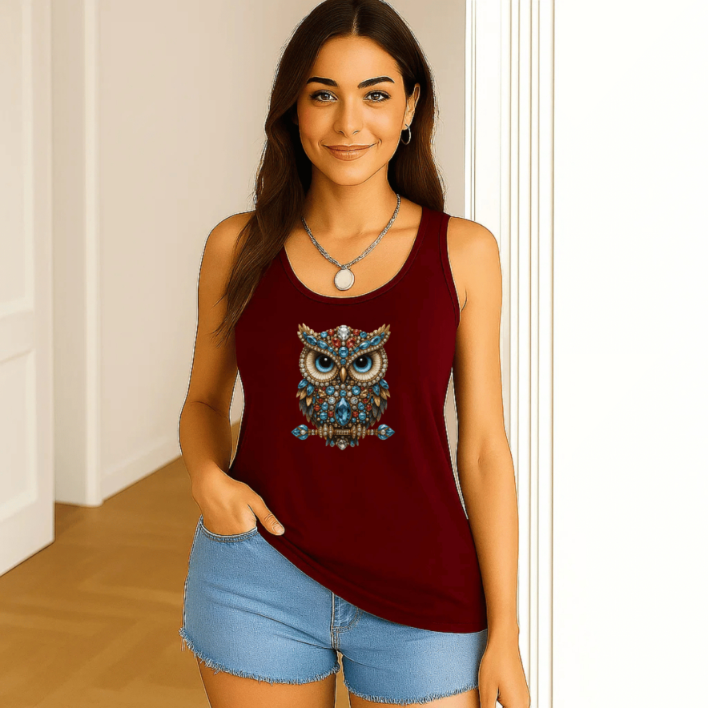 Regata Feminina Cavada Estampada Coruja Pedras Academia Treino 100% Algodão Premium Verão