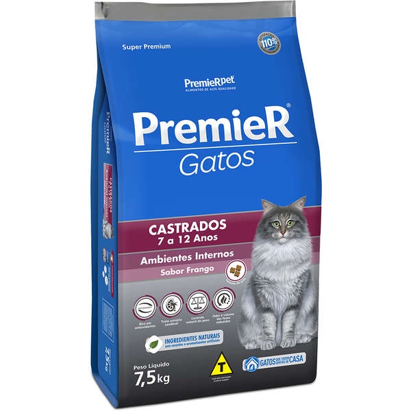 Ração Premier Pet Ambientes Internos Gatos Castrados 6 a 11 anos – Frango 7,5 kg