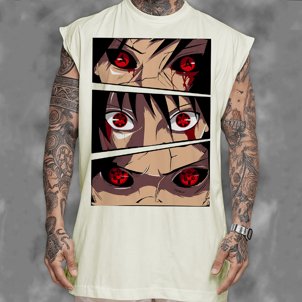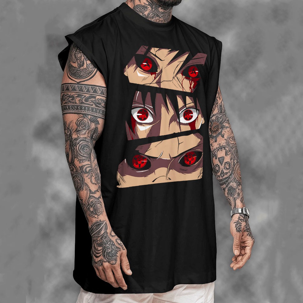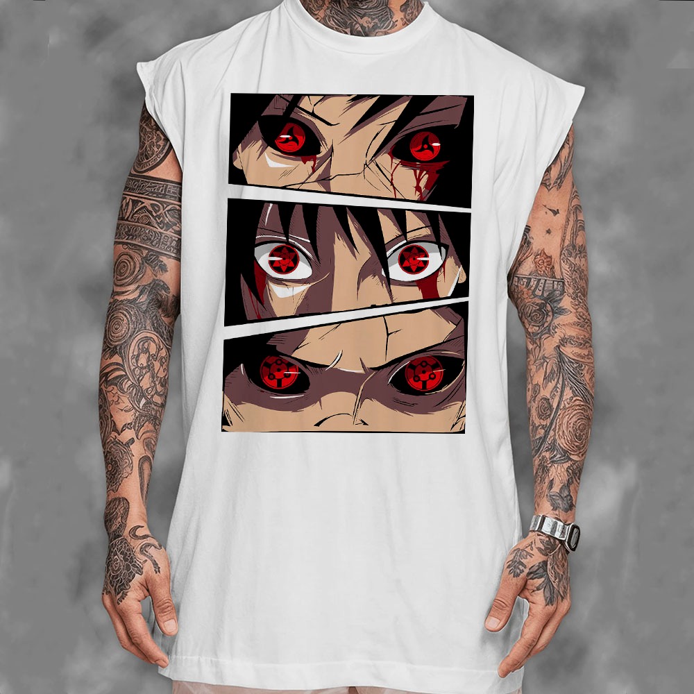 Camiseta regata machao oversized masculino anime narut Sharingan Madara Sasuke uchiha manga em algodao unissex