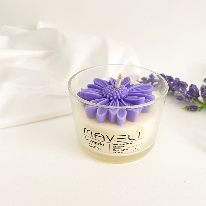 Vela aromática de lavanda perfumada cera vegetal 100g